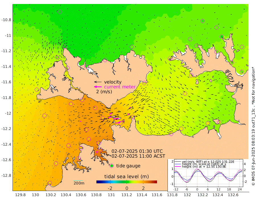 146cm/s 78T +4cm/s rms + 6cm/s 51T. Darwin_C1 52m 100cm/s 93T +4cm/s rms + 7cm/s -161T. Darwin_CW1 22m 95cm/s 72T +4cm/s rms + 8cm/s 61T. Darwin_CW2 34m 81cm/s 47T +3cm/s rms + 9cm/s 98T. Darwin_CW3 22m 148cm/s 89T +5cm/s rms + 7cm/s 88T. Darwin_C3 56m 75cm/s 65T +2cm/s rms + 9cm/s -126T. Darwin_CTbW 22m 24cm/s 75T +1cm/s rms + 1cm/s -47T. DARBGF 30m 15cm/s 90T +4cm/s rms + 3cm/s 80T. NRSDAR 19m 14cm Goodrich Bank 153cm Point Jenny 152cm Native Point 170cm Fish Reef 171cm Tapa Bay 87cm Point Fawcett (Offshore) 186cm Burge Point 163cm Munkunuwa 138cm Beagle A 184cm Parsons Bank 181cm Fenton Patches 177cm Hancox Shoal Area 189cm Nightcliff 207cm Darwin 186cm Charles Point Patches 152cm Glyde Point 124cm Chambers Bay 118cm Point Stuart 129cm Cape Hotham 111cm Christine Reef 126cm West Alligator Head 114cm East Field Island 112cm Two Hills Bay 103cm Camp Point 177cm Medina Inlet South 76cm South Barlow Point 49cm St. Asaph Bay 16cm Cape Van Dieman 26cm Snake Bay 21cm Cache Point 35cm Point Jahleel (Off) 73cm Cape Don 41cm Port Essington 42cm Smith Point - West 36cm NW Peacock Island 25cm North Of Jones Shoal 10cm Peacock Island 42cm Point David 42cm D'urville Point 42cm Copeland Island 46cm One Tree Point