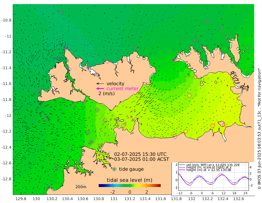 29cm/s 82T +4cm/s rms + 6cm/s 51T. Darwin_C1 52m 19cm/s 88T +4cm/s rms + 7cm/s -161T. Darwin_CW1 22m 19cm/s 71T +4cm/s rms + 8cm/s 61T. Darwin_CW2 34m 22cm/s 46T +3cm/s rms + 9cm/s 98T. Darwin_CW3 22m 41cm/s 90T +5cm/s rms + 7cm/s 88T. Darwin_C3 56m 13cm/s 67T +2cm/s rms + 9cm/s -126T. Darwin_CTbW 22m 19cm/s -81T +1cm/s rms + 1cm/s -47T. DARBGF 30m 29cm/s -51T +4cm/s rms + 3cm/s 80T. NRSDAR 19m -61cm Goodrich Bank 3cm Point Jenny -3cm Native Point 15cm Fish Reef 14cm Tapa Bay -28cm Point Fawcett (Offshore) 16cm Burge Point 6cm Munkunuwa -17cm Beagle A 29cm Parsons Bank 10cm Fenton Patches 38cm Hancox Shoal Area 32cm Nightcliff 36cm Darwin 18cm Charles Point Patches 55cm Glyde Point 100cm Chambers Bay 110cm Point Stuart 72cm Cape Hotham 77cm Christine Reef 125cm West Alligator Head 135cm East Field Island 78cm Two Hills Bay 57cm Camp Point 12cm Medina Inlet South -47cm South Barlow Point -51cm St. Asaph Bay -60cm Cape Van Dieman -59cm Snake Bay -49cm Cache Point -32cm Point Jahleel (Off) 6cm Cape Don -23cm Port Essington -23cm Smith Point - West -22cm NW Peacock Island -28cm North Of Jones Shoal -8cm Peacock Island 5cm Point David -19cm D'urville Point 11cm Copeland Island 3cm One Tree Point