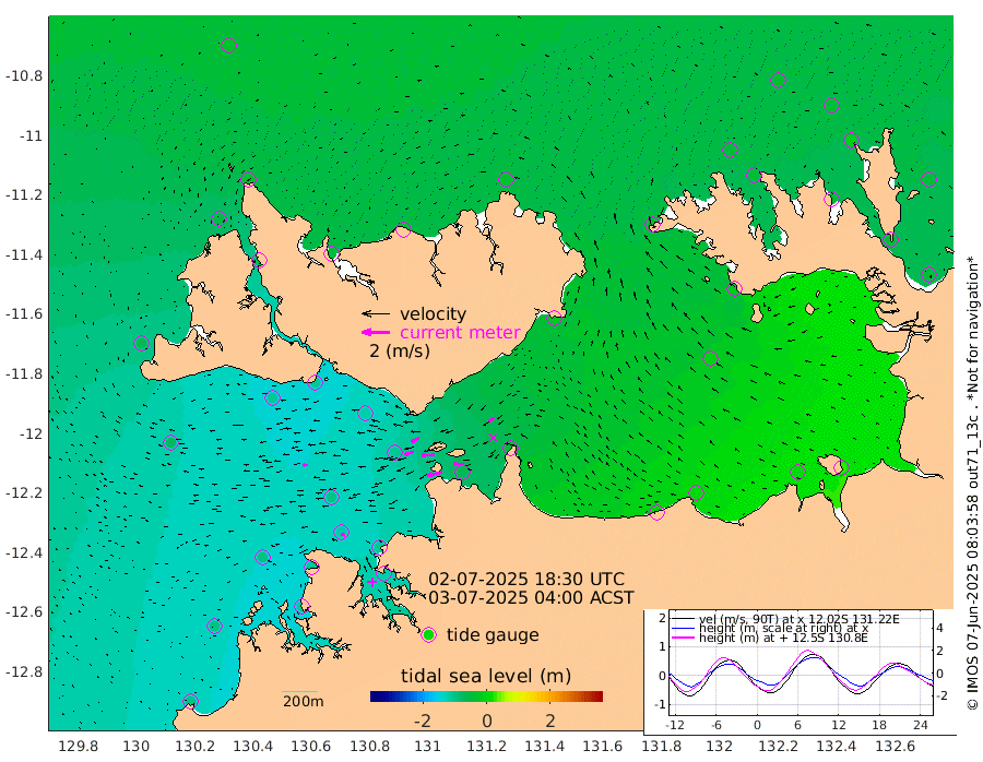 110cm/s -102T +4cm/s rms + 6cm/s 51T. Darwin_C1 52m 75cm/s -90T +4cm/s rms + 7cm/s -161T. Darwin_CW1 22m 69cm/s -108T +4cm/s rms + 8cm/s 61T. Darwin_CW2 34m 46cm/s -126T +3cm/s rms + 9cm/s 98T. Darwin_CW3 22m 93cm/s -91T +5cm/s rms + 7cm/s 88T. Darwin_C3 56m 63cm/s -115T +2cm/s rms + 9cm/s -126T. Darwin_CTbW 22m 34cm/s -92T +1cm/s rms + 1cm/s -47T. DARBGF 30m 28cm/s -70T +4cm/s rms + 3cm/s 80T. NRSDAR 19m -29cm Goodrich Bank -93cm Point Jenny -97cm Native Point -96cm Fish Reef -109cm Tapa Bay -66cm Point Fawcett (Offshore) -103cm Burge Point -110cm Munkunuwa -78cm Beagle A -113cm Parsons Bank -97cm Fenton Patches -103cm Hancox Shoal Area -107cm Nightcliff -121cm Darwin -116cm Charles Point Patches -61cm Glyde Point -11cm Chambers Bay 3cm Point Stuart -35cm Cape Hotham -7cm Christine Reef 9cm West Alligator Head 33cm East Field Island -18cm Two Hills Bay -22cm Camp Point -111cm Medina Inlet South -70cm South Barlow Point -50cm St. Asaph Bay -33cm Cape Van Dieman -42cm Snake Bay -27cm Cache Point -31cm Point Jahleel (Off) -41cm Cape Don -39cm Port Essington -38cm Smith Point - West -36cm NW Peacock Island -29cm North Of Jones Shoal -11cm Peacock Island -43cm Point David -41cm D'urville Point -40cm Copeland Island -41cm One Tree Point