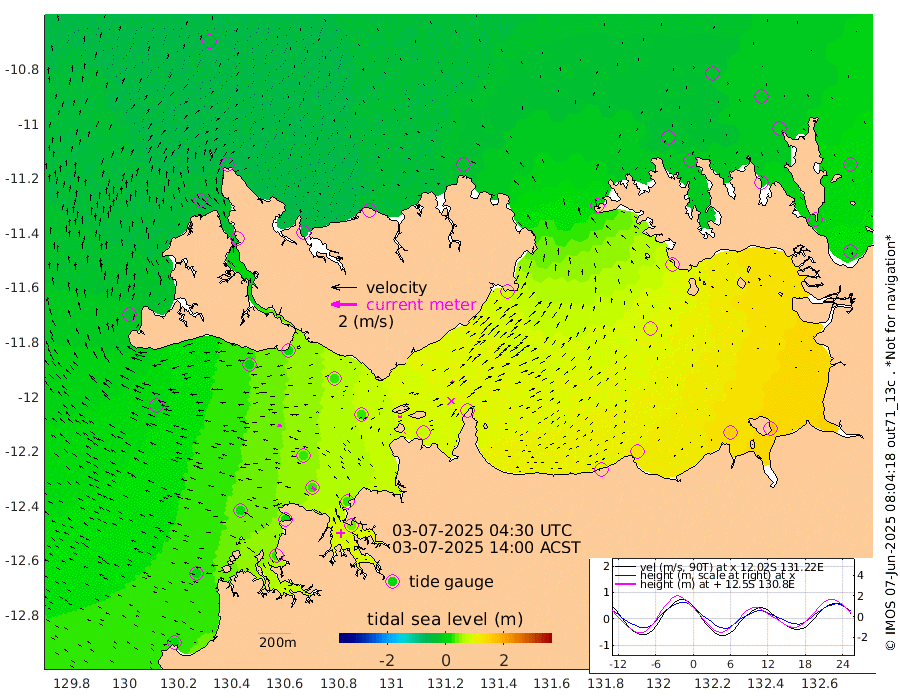 3cm/s -104T +4cm/s rms + 6cm/s 51T. Darwin_C1 52m 2cm/s 87T +4cm/s rms + 7cm/s -161T. Darwin_CW1 22m 6cm/s 80T +4cm/s rms + 8cm/s 61T. Darwin_CW2 34m 14cm/s 34T +3cm/s rms + 9cm/s 98T. Darwin_CW3 22m 30cm/s 93T +5cm/s rms + 7cm/s 88T. Darwin_C3 56m 4cm/s -122T +2cm/s rms + 9cm/s -126T. Darwin_CTbW 22m 33cm/s -82T +1cm/s rms + 1cm/s -47T. DARBGF 30m 38cm/s -53T +4cm/s rms + 3cm/s 80T. NRSDAR 19m -43cm Goodrich Bank 6cm Point Jenny 4cm Native Point 19cm Fish Reef 12cm Tapa Bay -30cm Point Fawcett (Offshore) 29cm Burge Point -1cm Munkunuwa -2cm Beagle A 26cm Parsons Bank 27cm Fenton Patches 31cm Hancox Shoal Area 24cm Nightcliff 44cm Darwin 25cm Charles Point Patches 72cm Glyde Point 113cm Chambers Bay 132cm Point Stuart 79cm Cape Hotham 99cm Christine Reef 149cm West Alligator Head 171cm East Field Island 91cm Two Hills Bay 83cm Camp Point 15cm Medina Inlet South -39cm South Barlow Point -46cm St. Asaph Bay -46cm Cape Van Dieman -44cm Snake Bay -37cm Cache Point -23cm Point Jahleel (Off) 16cm Cape Don -16cm Port Essington -21cm Smith Point - West -19cm NW Peacock Island -30cm North Of Jones Shoal -9cm Peacock Island -2cm Point David -19cm D'urville Point 0cm Copeland Island -1cm One Tree Point