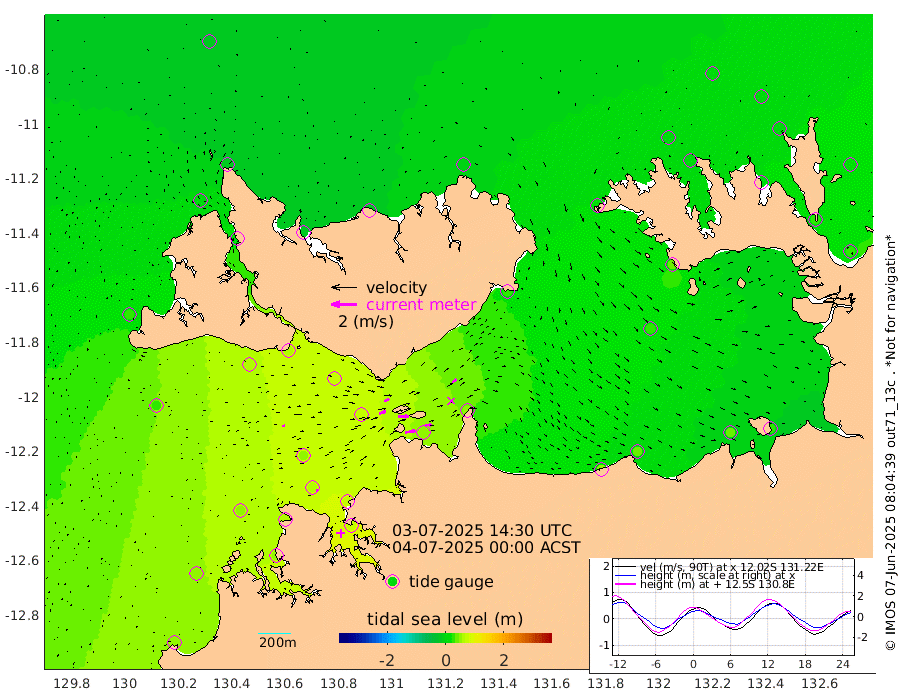 80cm/s 79T +4cm/s rms + 6cm/s 51T. Darwin_C1 52m 50cm/s 92T +4cm/s rms + 7cm/s -161T. Darwin_CW1 22m 53cm/s 72T +4cm/s rms + 8cm/s 61T. Darwin_CW2 34m 37cm/s 49T +3cm/s rms + 9cm/s 98T. Darwin_CW3 22m 82cm/s 88T +5cm/s rms + 7cm/s 88T. Darwin_C3 56m 43cm/s 66T +2cm/s rms + 9cm/s -126T. Darwin_CTbW 22m 18cm/s 85T +1cm/s rms + 1cm/s -47T. DARBGF 30m 12cm/s 102T +4cm/s rms + 3cm/s 80T. NRSDAR 19m -20cm Goodrich Bank 51cm Point Jenny 48cm Native Point 56cm Fish Reef 66cm Tapa Bay 25cm Point Fawcett (Offshore) 52cm Burge Point 63cm Munkunuwa 26cm Beagle A 71cm Parsons Bank 47cm Fenton Patches 74cm Hancox Shoal Area 74cm Nightcliff 74cm Darwin 64cm Charles Point Patches 49cm Glyde Point 46cm Chambers Bay 38cm Point Stuart 46cm Cape Hotham 29cm Christine Reef 41cm West Alligator Head 26cm East Field Island 38cm Two Hills Bay 24cm Camp Point 62cm Medina Inlet South 11cm South Barlow Point 1cm St. Asaph Bay -17cm Cape Van Dieman -12cm Snake Bay -14cm Cache Point -3cm Point Jahleel (Off) 18cm Cape Don 5cm Port Essington 8cm Smith Point - West 5cm NW Peacock Island 2cm North Of Jones Shoal 2cm Peacock Island 24cm Point David 10cm D'urville Point 27cm Copeland Island 21cm One Tree Point