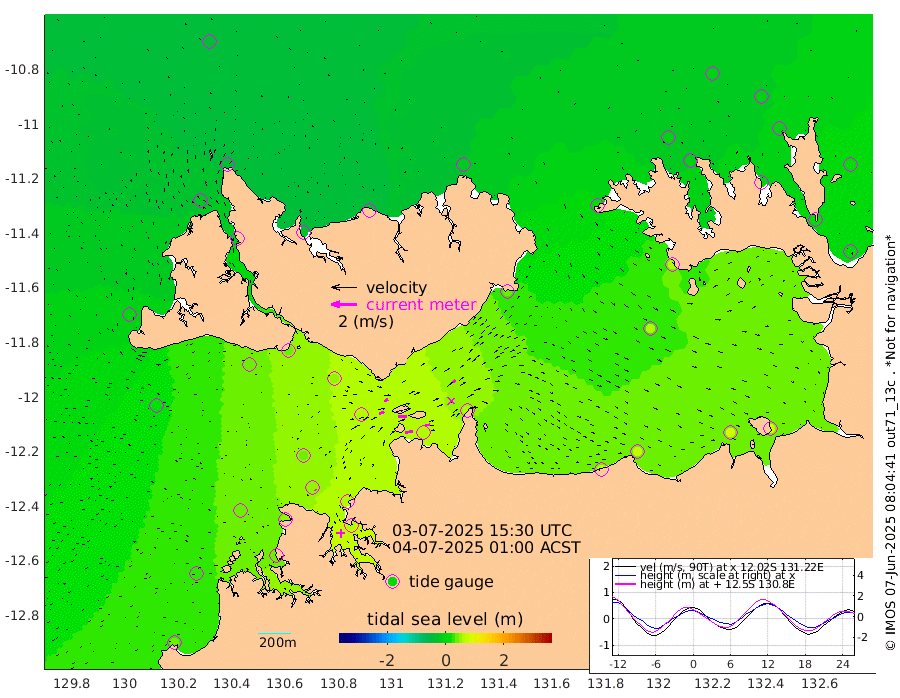 59cm/s 80T +4cm/s rms + 6cm/s 51T. Darwin_C1 52m 41cm/s 90T +4cm/s rms + 7cm/s -161T. Darwin_CW1 22m 40cm/s 72T +4cm/s rms + 8cm/s 61T. Darwin_CW2 34m 29cm/s 51T +3cm/s rms + 9cm/s 98T. Darwin_CW3 22m 68cm/s 88T +5cm/s rms + 7cm/s 88T. Darwin_C3 56m 32cm/s 66T +2cm/s rms + 9cm/s -126T. Darwin_CTbW 22m 3cm/s 40T +1cm/s rms + 1cm/s -47T. DARBGF 30m 8cm/s -31T +4cm/s rms + 3cm/s 80T. NRSDAR 19m -37cm Goodrich Bank 35cm Point Jenny 31cm Native Point 44cm Fish Reef 48cm Tapa Bay 7cm Point Fawcett (Offshore) 41cm Burge Point 41cm Munkunuwa 13cm Beagle A 55cm Parsons Bank 37cm Fenton Patches 62cm Hancox Shoal Area 61cm Nightcliff 61cm Darwin 48cm Charles Point Patches 57cm Glyde Point 77cm Chambers Bay 77cm Point Stuart 63cm Cape Hotham 56cm Christine Reef 87cm West Alligator Head 84cm East Field Island 62cm Two Hills Bay 44cm Camp Point 44cm Medina Inlet South -12cm South Barlow Point -18cm St. Asaph Bay -35cm Cape Van Dieman -32cm Snake Bay -27cm Cache Point -14cm Point Jahleel (Off) 15cm Cape Don -7cm Port Essington -5cm Smith Point - West -7cm NW Peacock Island -10cm North Of Jones Shoal -2cm Peacock Island 13cm Point David -3cm D'urville Point 18cm Copeland Island 12cm One Tree Point