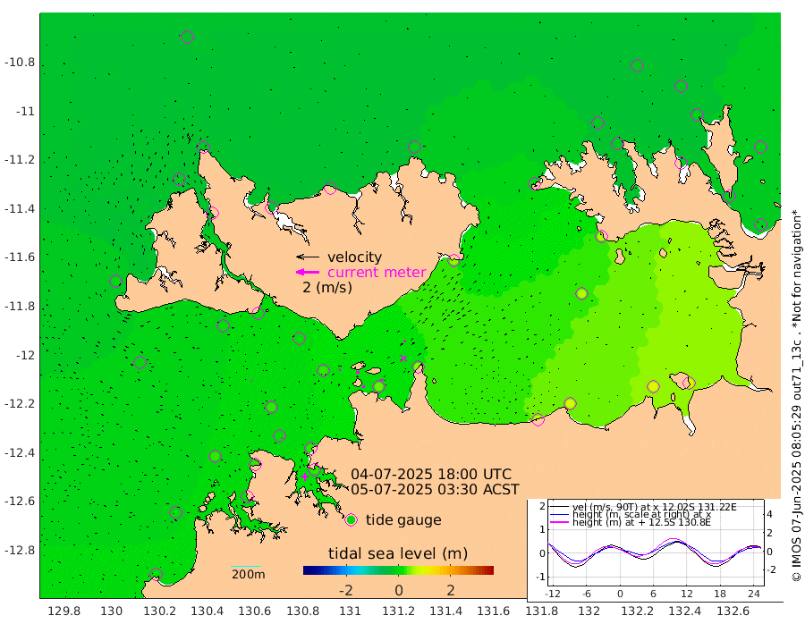 17cm/s 84T +4cm/s rms + 6cm/s 51T. Darwin_C1 52m 31cm/s 92T +4cm/s rms + 7cm/s -161T. Darwin_CW1 22m 8cm/s 84T +4cm/s rms + 8cm/s 61T. Darwin_CW2 34m 14cm/s 29T +3cm/s rms + 9cm/s 98T. Darwin_CW3 22m 31cm/s 91T +5cm/s rms + 7cm/s 88T. Darwin_C3 56m 6cm/s 78T +2cm/s rms + 9cm/s -126T. Darwin_CTbW 22m 6cm/s -72T +1cm/s rms + 1cm/s -47T. DARBGF 30m 9cm/s -54T +4cm/s rms + 3cm/s 80T. NRSDAR 19m -26cm Goodrich Bank 19cm Point Jenny 14cm Native Point 27cm Fish Reef 23cm Tapa Bay 4cm Point Fawcett (Offshore) 22cm Burge Point 13cm Munkunuwa 11cm Beagle A 19cm Parsons Bank 23cm Fenton Patches 29cm Hancox Shoal Area 31cm Nightcliff 28cm Darwin 20cm Charles Point Patches 44cm Glyde Point 73cm Chambers Bay 82cm Point Stuart 56cm Cape Hotham 59cm Christine Reef 94cm West Alligator Head 104cm East Field Island 58cm Two Hills Bay 46cm Camp Point 18cm Medina Inlet South -19cm South Barlow Point -15cm St. Asaph Bay -27cm Cape Van Dieman -30cm Snake Bay -17cm Cache Point -10cm Point Jahleel (Off) 7cm Cape Don -14cm Port Essington -13cm Smith Point - West -15cm NW Peacock Island -12cm North Of Jones Shoal -4cm Peacock Island -9cm Point David -15cm D'urville Point -6cm Copeland Island -7cm One Tree Point