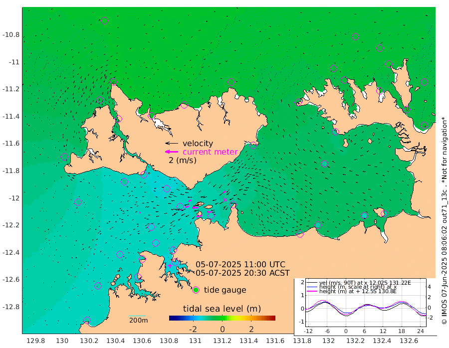 84cm/s -102T +4cm/s rms + 6cm/s 51T. Darwin_C1 52m 73cm/s -91T +4cm/s rms + 7cm/s -161T. Darwin_CW1 22m 54cm/s -106T +4cm/s rms + 8cm/s 61T. Darwin_CW2 34m 43cm/s -136T +3cm/s rms + 9cm/s 98T. Darwin_CW3 22m 95cm/s -90T +5cm/s rms + 7cm/s 88T. Darwin_C3 56m 53cm/s -115T +2cm/s rms + 9cm/s -126T. Darwin_CTbW 22m 17cm/s -105T +1cm/s rms + 1cm/s -47T. DARBGF 30m 8cm/s -88T +4cm/s rms + 3cm/s 80T. NRSDAR 19m -21cm Goodrich Bank -119cm Point Jenny -115cm Native Point -131cm Fish Reef -128cm Tapa Bay -82cm Point Fawcett (Offshore) -137cm Burge Point -109cm Munkunuwa -111cm Beagle A -127cm Parsons Bank -136cm Fenton Patches -131cm Hancox Shoal Area -148cm Nightcliff -148cm Darwin -136cm Charles Point Patches -125cm Glyde Point -123cm Chambers Bay -121cm Point Stuart -119cm Cape Hotham -109cm Christine Reef -130cm West Alligator Head -129cm East Field Island -110cm Two Hills Bay -100cm Camp Point -128cm Medina Inlet South -60cm South Barlow Point -49cm St. Asaph Bay -23cm Cape Van Dieman -29cm Snake Bay -33cm Cache Point -42cm Point Jahleel (Off) -69cm Cape Don -41cm Port Essington -42cm Smith Point - West -39cm NW Peacock Island -40cm North Of Jones Shoal -14cm Peacock Island -44cm Point David -41cm D'urville Point -44cm Copeland Island -50cm One Tree Point