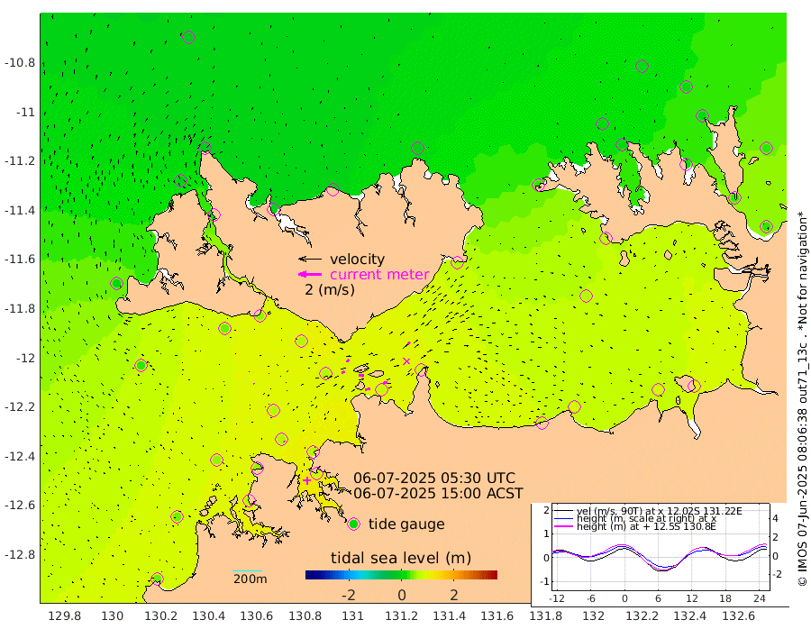 44cm/s 77T +4cm/s rms + 6cm/s 51T. Darwin_C1 52m 38cm/s 86T +4cm/s rms + 7cm/s -161T. Darwin_CW1 22m 26cm/s 74T +4cm/s rms + 8cm/s 61T. Darwin_CW2 34m 27cm/s 43T +3cm/s rms + 9cm/s 98T. Darwin_CW3 22m 48cm/s 90T +5cm/s rms + 7cm/s 88T. Darwin_C3 56m 27cm/s 65T +2cm/s rms + 9cm/s -126T. Darwin_CTbW 22m 4cm/s -53T +1cm/s rms + 1cm/s -47T. DARBGF 30m 8cm/s -32T +4cm/s rms + 3cm/s 80T. NRSDAR 19m -20cm Goodrich Bank 41cm Point Jenny 40cm Native Point 53cm Fish Reef 49cm Tapa Bay 9cm Point Fawcett (Offshore) 60cm Burge Point 38cm Munkunuwa 33cm Beagle A 62cm Parsons Bank 57cm Fenton Patches 62cm Hancox Shoal Area 67cm Nightcliff 76cm Darwin 61cm Charles Point Patches 71cm Glyde Point 76cm Chambers Bay 83cm Point Stuart 69cm Cape Hotham 66cm Christine Reef 90cm West Alligator Head 94cm East Field Island 68cm Two Hills Bay 63cm Camp Point 54cm Medina Inlet South 4cm South Barlow Point -11cm St. Asaph Bay -19cm Cape Van Dieman -11cm Snake Bay -13cm Cache Point -2cm Point Jahleel (Off) 32cm Cape Don 10cm Port Essington 7cm Smith Point - West 9cm NW Peacock Island 2cm North Of Jones Shoal 3cm Peacock Island 30cm Point David 13cm D'urville Point 32cm Copeland Island 31cm One Tree Point