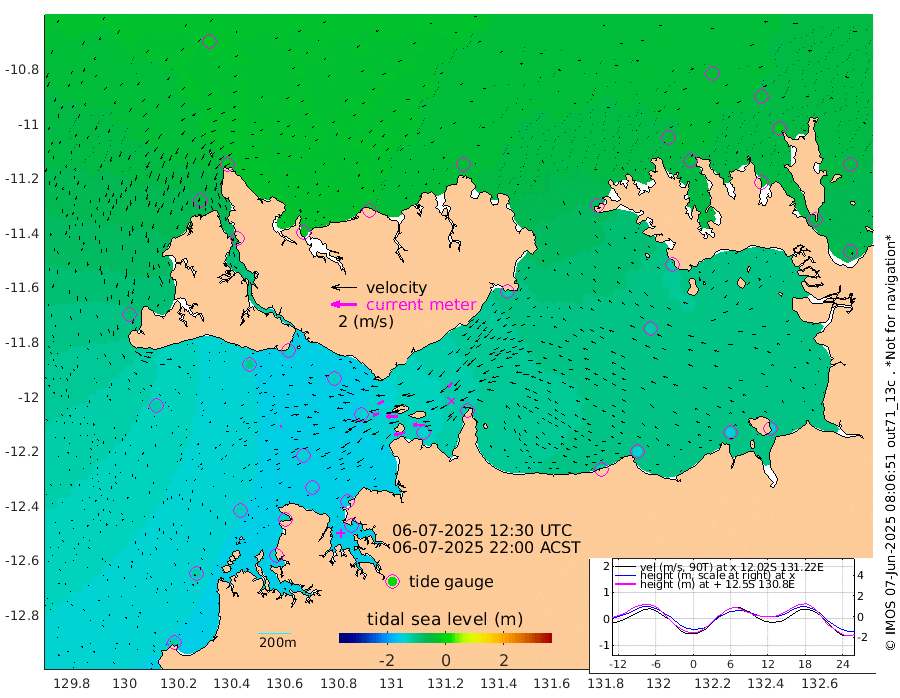 89cm/s -102T +4cm/s rms + 6cm/s 51T. Darwin_C1 52m 91cm/s -91T +4cm/s rms + 7cm/s -161T. Darwin_CW1 22m 48cm/s -105T +4cm/s rms + 8cm/s 61T. Darwin_CW2 34m 49cm/s -138T +3cm/s rms + 9cm/s 98T. Darwin_CW3 22m 91cm/s -89T +5cm/s rms + 7cm/s 88T. Darwin_C3 56m 52cm/s -115T +2cm/s rms + 9cm/s -126T. Darwin_CTbW 22m 11cm/s -114T +1cm/s rms + 1cm/s -47T. DARBGF 30m 4cm/s -125T +4cm/s rms + 3cm/s 80T. NRSDAR 19m -19cm Goodrich Bank -120cm Point Jenny -117cm Native Point -135cm Fish Reef -132cm Tapa Bay -79cm Point Fawcett (Offshore) -144cm Burge Point -110cm Munkunuwa -113cm Beagle A -131cm Parsons Bank -142cm Fenton Patches -135cm Hancox Shoal Area -151cm Nightcliff -157cm Darwin -144cm Charles Point Patches -137cm Glyde Point -132cm Chambers Bay -137cm Point Stuart -130cm Cape Hotham -119cm Christine Reef -147cm West Alligator Head -151cm East Field Island -120cm Two Hills Bay -115cm Camp Point -132cm Medina Inlet South -57cm South Barlow Point -45cm St. Asaph Bay -20cm Cape Van Dieman -28cm Snake Bay -30cm Cache Point -40cm Point Jahleel (Off) -71cm Cape Don -40cm Port Essington -38cm Smith Point - West -36cm NW Peacock Island -36cm North Of Jones Shoal -13cm Peacock Island -46cm Point David -38cm D'urville Point -46cm Copeland Island -51cm One Tree Point