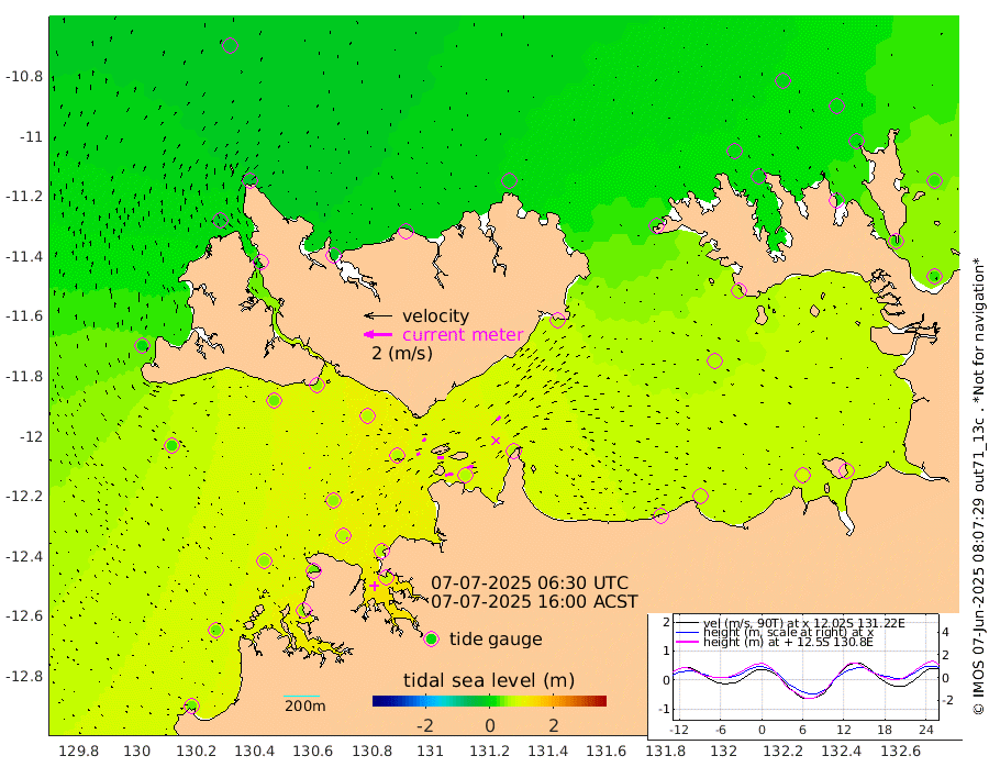 54cm/s 77T +4cm/s rms + 6cm/s 51T. Darwin_C1 52m 48cm/s 88T +4cm/s rms + 7cm/s -161T. Darwin_CW1 22m 24cm/s 74T +4cm/s rms + 8cm/s 61T. Darwin_CW2 34m 35cm/s 41T +3cm/s rms + 9cm/s 98T. Darwin_CW3 22m 45cm/s 90T +5cm/s rms + 7cm/s 88T. Darwin_C3 56m 30cm/s 65T +2cm/s rms + 9cm/s -126T. Darwin_CTbW 22m 3cm/s -50T +1cm/s rms + 1cm/s -47T. DARBGF 30m 6cm/s -20T +4cm/s rms + 3cm/s 80T. NRSDAR 19m -29cm Goodrich Bank 35cm Point Jenny 34cm Native Point 47cm Fish Reef 45cm Tapa Bay 1cm Point Fawcett (Offshore) 56cm Burge Point 36cm Munkunuwa 25cm Beagle A 59cm Parsons Bank 52cm Fenton Patches 59cm Hancox Shoal Area 65cm Nightcliff 73cm Darwin 56cm Charles Point Patches 66cm Glyde Point 66cm Chambers Bay 75cm Point Stuart 64cm Cape Hotham 57cm Christine Reef 81cm West Alligator Head 84cm East Field Island 60cm Two Hills Bay 58cm Camp Point 49cm Medina Inlet South -3cm South Barlow Point -19cm St. Asaph Bay -27cm Cape Van Dieman -19cm Snake Bay -23cm Cache Point -11cm Point Jahleel (Off) 24cm Cape Don 3cm Port Essington -1cm Smith Point - West 2cm NW Peacock Island -6cm North Of Jones Shoal 0cm Peacock Island 28cm Point David 6cm D'urville Point 30cm Copeland Island 27cm One Tree Point