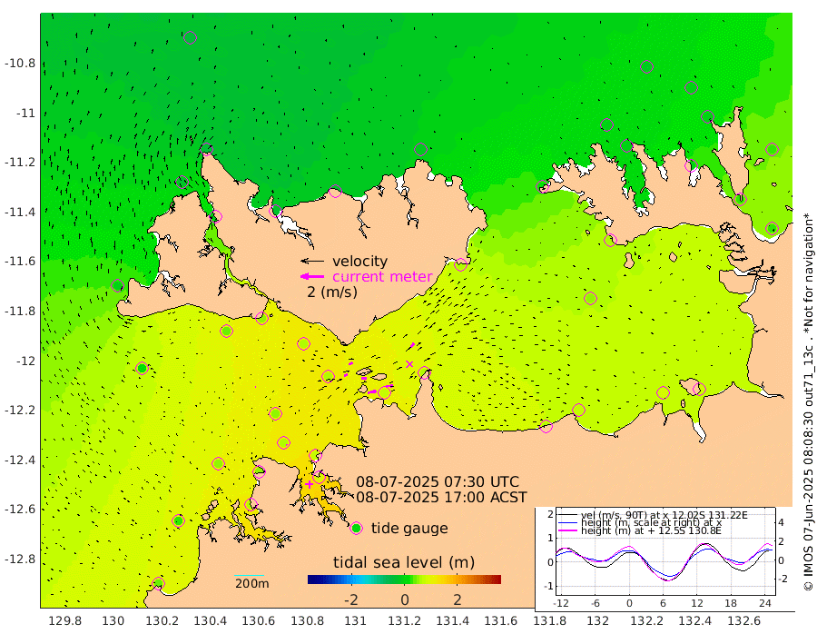 72cm/s 78T +4cm/s rms + 6cm/s 51T. Darwin_C1 52m 62cm/s 91T +4cm/s rms + 7cm/s -161T. Darwin_CW1 22m 28cm/s 72T +4cm/s rms + 8cm/s 61T. Darwin_CW2 34m 48cm/s 40T +3cm/s rms + 9cm/s 98T. Darwin_CW3 22m 49cm/s 90T +5cm/s rms + 7cm/s 88T. Darwin_C3 56m 36cm/s 66T +2cm/s rms + 9cm/s -126T. Darwin_CTbW 22m 4cm/s -54T +1cm/s rms + 1cm/s -47T. DARBGF 30m 5cm/s -19T +4cm/s rms + 3cm/s 80T. NRSDAR 19m -41cm Goodrich Bank 34cm Point Jenny 33cm Native Point 47cm Fish Reef 48cm Tapa Bay -7cm Point Fawcett (Offshore) 59cm Burge Point 40cm Munkunuwa 21cm Beagle A 64cm Parsons Bank 54cm Fenton Patches 65cm Hancox Shoal Area 70cm Nightcliff 79cm Darwin 60cm Charles Point Patches 68cm Glyde Point 65cm Chambers Bay 75cm Point Stuart 66cm Cape Hotham 54cm Christine Reef 81cm West Alligator Head 83cm East Field Island 58cm Two Hills Bay 58cm Camp Point 51cm Medina Inlet South -11cm South Barlow Point -29cm St. Asaph Bay -39cm Cape Van Dieman -30cm Snake Bay -36cm Cache Point -21cm Point Jahleel (Off) 17cm Cape Don -6cm Port Essington -10cm Smith Point - West -7cm NW Peacock Island -16cm North Of Jones Shoal -3cm Peacock Island 26cm Point David -2cm D'urville Point 29cm Copeland Island 23cm One Tree Point