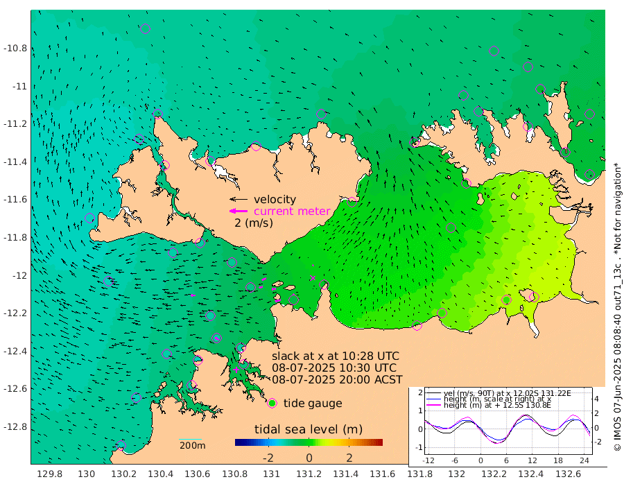 67cm/s -103T +4cm/s rms + 6cm/s 51T. Darwin_C1 52m 15cm/s -82T +4cm/s rms + 7cm/s -161T. Darwin_CW1 22m 42cm/s -105T +4cm/s rms + 8cm/s 61T. Darwin_CW2 34m 13cm/s -110T +3cm/s rms + 9cm/s 98T. Darwin_CW3 22m 46cm/s -92T +5cm/s rms + 7cm/s 88T. Darwin_C3 56m 52cm/s -116T +2cm/s rms + 9cm/s -126T. Darwin_CTbW 22m 51cm/s -90T +1cm/s rms + 1cm/s -47T. DARBGF 30m 51cm/s -58T +4cm/s rms + 3cm/s 80T. NRSDAR 19m -96cm Goodrich Bank -130cm Point Jenny -132cm Native Point -116cm Fish Reef -128cm Tapa Bay -127cm Point Fawcett (Offshore) -114cm Burge Point -115cm Munkunuwa -133cm Beagle A -101cm Parsons Bank -120cm Fenton Patches -99cm Hancox Shoal Area -117cm Nightcliff -100cm Darwin -115cm Charles Point Patches -52cm Glyde Point -2cm Chambers Bay 23cm Point Stuart -29cm Cape Hotham -13cm Christine Reef 32cm West Alligator Head 57cm East Field Island -12cm Two Hills Bay -17cm Camp Point -116cm Medina Inlet South -119cm South Barlow Point -118cm St. Asaph Bay -99cm Cape Van Dieman -99cm Snake Bay -97cm Cache Point -86cm Point Jahleel (Off) -64cm Cape Don -73cm Port Essington -81cm Smith Point - West -75cm NW Peacock Island -78cm North Of Jones Shoal -26cm Peacock Island -51cm Point David -75cm D'urville Point -45cm Copeland Island -52cm One Tree Point