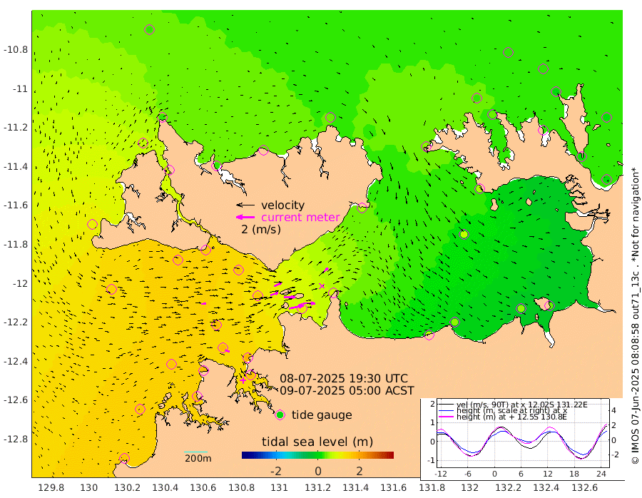 163cm/s 77T +4cm/s rms + 6cm/s 51T. Darwin_C1 52m 129cm/s 91T +4cm/s rms + 7cm/s -161T. Darwin_CW1 22m 84cm/s 74T +4cm/s rms + 8cm/s 61T. Darwin_CW2 34m 78cm/s 47T +3cm/s rms + 9cm/s 98T. Darwin_CW3 22m 121cm/s 89T +5cm/s rms + 7cm/s 88T. Darwin_C3 56m 92cm/s 66T +2cm/s rms + 9cm/s -126T. Darwin_CTbW 22m 49cm/s 86T +1cm/s rms + 1cm/s -47T. DARBGF 30m 47cm/s 115T +4cm/s rms + 3cm/s 80T. NRSDAR 19m 29cm Goodrich Bank 166cm Point Jenny 164cm Native Point 166cm Fish Reef 177cm Tapa Bay 109cm Point Fawcett (Offshore) 173cm Burge Point 163cm Munkunuwa 152cm Beagle A 160cm Parsons Bank 177cm Fenton Patches 164cm Hancox Shoal Area 186cm Nightcliff 176cm Darwin 172cm Charles Point Patches 116cm Glyde Point 73cm Chambers Bay 53cm Point Stuart 86cm Cape Hotham 72cm Christine Reef 55cm West Alligator Head 36cm East Field Island 61cm Two Hills Bay 64cm Camp Point 167cm Medina Inlet South 87cm South Barlow Point 75cm St. Asaph Bay 32cm Cape Van Dieman 31cm Snake Bay 35cm Cache Point 39cm Point Jahleel (Off) 54cm Cape Don 32cm Port Essington 39cm Smith Point - West 28cm NW Peacock Island 27cm North Of Jones Shoal 9cm Peacock Island 16cm Point David 32cm D'urville Point 16cm Copeland Island 19cm One Tree Point