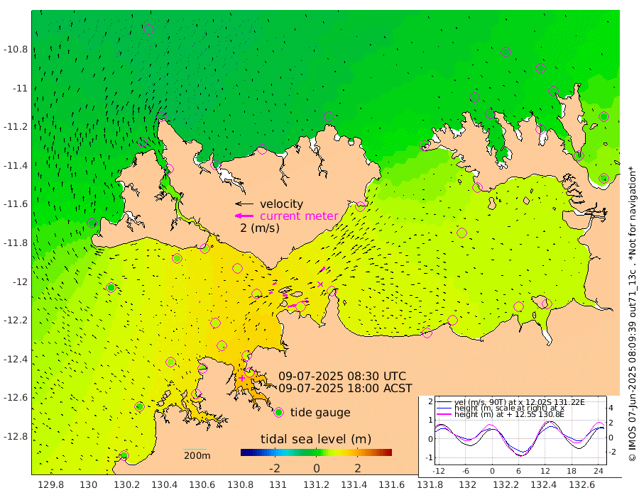 89cm/s 78T +4cm/s rms + 6cm/s 51T. Darwin_C1 52m 74cm/s 92T +4cm/s rms + 7cm/s -161T. Darwin_CW1 22m 35cm/s 70T +4cm/s rms + 8cm/s 61T. Darwin_CW2 34m 61cm/s 41T +3cm/s rms + 9cm/s 98T. Darwin_CW3 22m 57cm/s 90T +5cm/s rms + 7cm/s 88T. Darwin_C3 56m 42cm/s 66T +2cm/s rms + 9cm/s -126T. Darwin_CTbW 22m 7cm/s -68T +1cm/s rms + 1cm/s -47T. DARBGF 30m 10cm/s -38T +4cm/s rms + 3cm/s 80T. NRSDAR 19m -56cm Goodrich Bank 33cm Point Jenny 32cm Native Point 47cm Fish Reef 52cm Tapa Bay -18cm Point Fawcett (Offshore) 63cm Burge Point 45cm Munkunuwa 15cm Beagle A 72cm Parsons Bank 57cm Fenton Patches 75cm Hancox Shoal Area 78cm Nightcliff 88cm Darwin 65cm Charles Point Patches 75cm Glyde Point 73cm Chambers Bay 84cm Point Stuart 73cm Cape Hotham 59cm Christine Reef 91cm West Alligator Head 94cm East Field Island 62cm Two Hills Bay 63cm Camp Point 54cm Medina Inlet South -21cm South Barlow Point -42cm St. Asaph Bay -54cm Cape Van Dieman -44cm Snake Bay -51cm Cache Point -32cm Point Jahleel (Off) 11cm Cape Don -16cm Port Essington -20cm Smith Point - West -16cm NW Peacock Island -28cm North Of Jones Shoal -6cm Peacock Island 23cm Point David -11cm D'urville Point 28cm Copeland Island 18cm One Tree Point