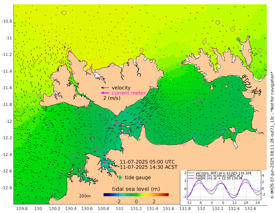 84cm/s -100T +4cm/s rms + 6cm/s 51T. Darwin_C1 52m 81cm/s -92T +4cm/s rms + 7cm/s -161T. Darwin_CW1 22m 35cm/s -107T +4cm/s rms + 8cm/s 61T. Darwin_CW2 34m 62cm/s -136T +3cm/s rms + 9cm/s 98T. Darwin_CW3 22m 64cm/s -91T +5cm/s rms + 7cm/s 88T. Darwin_C3 56m 37cm/s -115T +2cm/s rms + 9cm/s -126T. Darwin_CTbW 22m 16cm/s 107T +1cm/s rms + 1cm/s -47T. DARBGF 30m 19cm/s 144T +4cm/s rms + 3cm/s 80T. NRSDAR 19m 81cm Goodrich Bank -15cm Point Jenny -11cm Native Point -27cm Fish Reef -30cm Tapa Bay 41cm Point Fawcett (Offshore) -42cm Burge Point -33cm Munkunuwa 2cm Beagle A -47cm Parsons Bank -40cm Fenton Patches -54cm Hancox Shoal Area -62cm Nightcliff -60cm Darwin -35cm Charles Point Patches -54cm Glyde Point -80cm Chambers Bay -80cm Point Stuart -55cm Cape Hotham -66cm Christine Reef -95cm West Alligator Head -104cm East Field Island -49cm Two Hills Bay -44cm Camp Point -33cm Medina Inlet South 49cm South Barlow Point 60cm St. Asaph Bay 83cm Cape Van Dieman 82cm Snake Bay 78cm Cache Point 58cm Point Jahleel (Off) 22cm Cape Don 58cm Port Essington 56cm Smith Point - West 60cm NW Peacock Island 63cm North Of Jones Shoal 21cm Peacock Island 49cm Point David 58cm D'urville Point 43cm Copeland Island 46cm One Tree Point