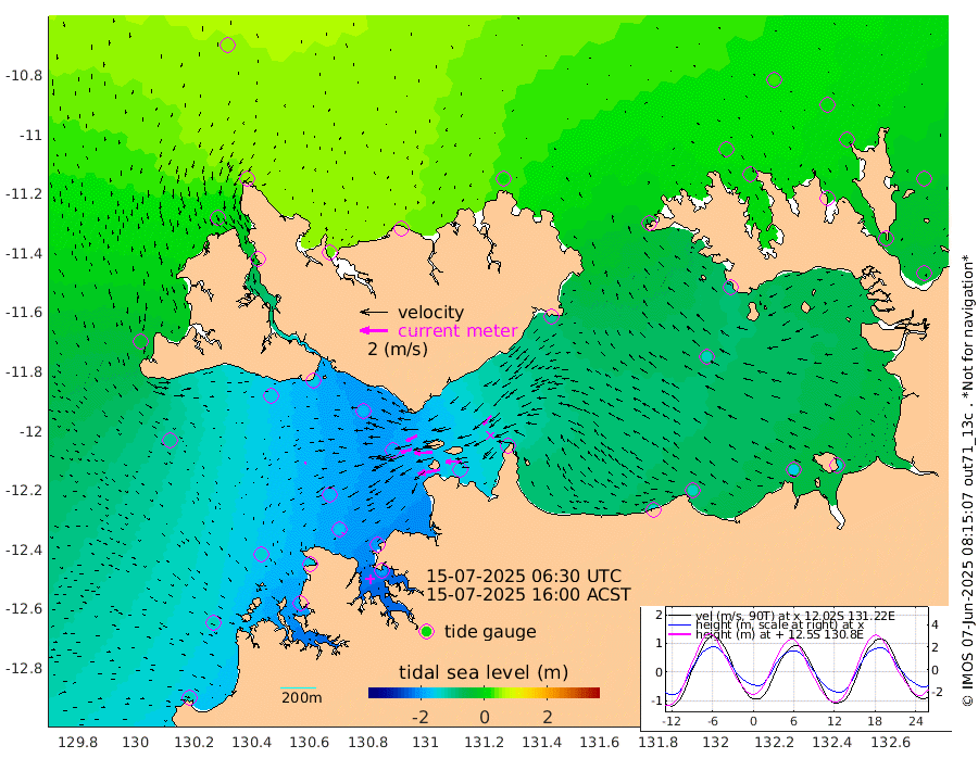161cm/s -101T +4cm/s rms + 6cm/s 51T. Darwin_C1 52m 114cm/s -91T +4cm/s rms + 7cm/s -161T. Darwin_CW1 22m 81cm/s -106T +4cm/s rms + 8cm/s 61T. Darwin_CW2 34m 85cm/s -136T +3cm/s rms + 9cm/s 98T. Darwin_CW3 22m 129cm/s -91T +5cm/s rms + 7cm/s 88T. Darwin_C3 56m 88cm/s -115T +2cm/s rms + 9cm/s -126T. Darwin_CTbW 22m 11cm/s -119T +1cm/s rms + 1cm/s -47T. DARBGF 30m 10cm/s -126T +4cm/s rms + 3cm/s 80T. NRSDAR 19m 49cm Goodrich Bank -129cm Point Jenny -127cm Native Point -140cm Fish Reef -157cm Tapa Bay -29cm Point Fawcett (Offshore) -173cm Burge Point -149cm Munkunuwa -104cm Beagle A -179cm Parsons Bank -170cm Fenton Patches -183cm Hancox Shoal Area -194cm Nightcliff -195cm Darwin -159cm Charles Point Patches -150cm Glyde Point -141cm Chambers Bay -135cm Point Stuart -137cm Cape Hotham -127cm Christine Reef -150cm West Alligator Head -142cm East Field Island -112cm Two Hills Bay -105cm Camp Point -149cm Medina Inlet South -20cm South Barlow Point 10cm St. Asaph Bay 47cm Cape Van Dieman 38cm Snake Bay 41cm Cache Point 14cm Point Jahleel (Off) -36cm Cape Don 10cm Port Essington 4cm Smith Point - West 7cm NW Peacock Island 28cm North Of Jones Shoal 8cm Peacock Island -20cm Point David 0cm D'urville Point -26cm Copeland Island -13cm One Tree Point