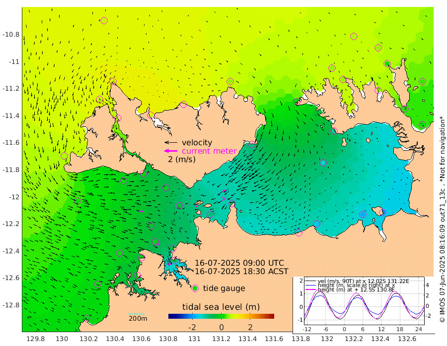 11cm/s -101T +4cm/s rms + 6cm/s 51T. Darwin_C1 52m 4cm/s -93T +4cm/s rms + 7cm/s -161T. Darwin_CW1 22m 6cm/s -106T +4cm/s rms + 8cm/s 61T. Darwin_CW2 34m 42cm/s -143T +3cm/s rms + 9cm/s 98T. Darwin_CW3 22m 38cm/s -88T +5cm/s rms + 7cm/s 88T. Darwin_C3 56m 3cm/s 54T +2cm/s rms + 9cm/s -126T. Darwin_CTbW 22m 50cm/s 97T +1cm/s rms + 1cm/s -47T. DARBGF 30m 56cm/s 128T +4cm/s rms + 3cm/s 80T. NRSDAR 19m 77cm Goodrich Bank 8cm Point Jenny 11cm Native Point 2cm Fish Reef -5cm Tapa Bay 64cm Point Fawcett (Offshore) -20cm Burge Point 14cm Munkunuwa 18cm Beagle A -21cm Parsons Bank -26cm Fenton Patches -42cm Hancox Shoal Area -45cm Nightcliff -40cm Darwin -8cm Charles Point Patches -81cm Glyde Point -152cm Chambers Bay -163cm Point Stuart -97cm Cape Hotham -135cm Christine Reef -189cm West Alligator Head -221cm East Field Island -108cm Two Hills Bay -100cm Camp Point 1cm Medina Inlet South 72cm South Barlow Point 77cm St. Asaph Bay 83cm Cape Van Dieman 79cm Snake Bay 71cm Cache Point 47cm Point Jahleel (Off) 5cm Cape Don 52cm Port Essington 49cm Smith Point - West 46cm NW Peacock Island 57cm North Of Jones Shoal 19cm Peacock Island 24cm Point David 47cm D'urville Point 18cm Copeland Island 27cm One Tree Point