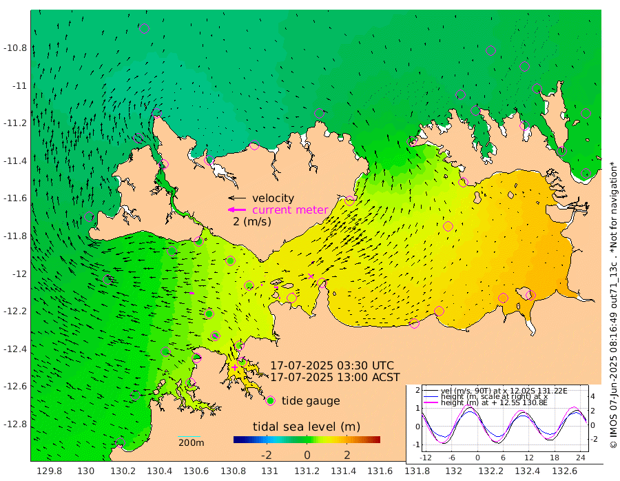 8cm/s 82T +4cm/s rms + 6cm/s 51T. Darwin_C1 52m 6cm/s 86T +4cm/s rms + 7cm/s -161T. Darwin_CW1 22m 13cm/s 67T +4cm/s rms + 8cm/s 61T. Darwin_CW2 34m 28cm/s 43T +3cm/s rms + 9cm/s 98T. Darwin_CW3 22m 41cm/s 93T +5cm/s rms + 7cm/s 88T. Darwin_C3 56m 3cm/s 77T +2cm/s rms + 9cm/s -126T. Darwin_CTbW 22m 53cm/s -82T +1cm/s rms + 1cm/s -47T. DARBGF 30m 64cm/s -53T +4cm/s rms + 3cm/s 80T. NRSDAR 19m -76cm Goodrich Bank -7cm Point Jenny -8cm Native Point -3cm Fish Reef 6cm Tapa Bay -66cm Point Fawcett (Offshore) 26cm Burge Point -11cm Munkunuwa -24cm Beagle A 25cm Parsons Bank 21cm Fenton Patches 40cm Hancox Shoal Area 40cm Nightcliff 45cm Darwin 13cm Charles Point Patches 83cm Glyde Point 149cm Chambers Bay 164cm Point Stuart 95cm Cape Hotham 135cm Christine Reef 188cm West Alligator Head 219cm East Field Island 108cm Two Hills Bay 106cm Camp Point 4cm Medina Inlet South -71cm South Barlow Point -80cm St. Asaph Bay -81cm Cape Van Dieman -76cm Snake Bay -72cm Cache Point -49cm Point Jahleel (Off) 1cm Cape Don -48cm Port Essington -51cm Smith Point - West -47cm NW Peacock Island -58cm North Of Jones Shoal -19cm Peacock Island -19cm Point David -47cm D'urville Point -15cm Copeland Island -21cm One Tree Point
