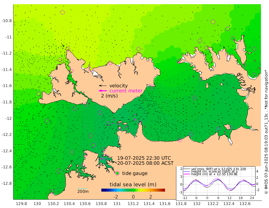 55cm/s -102T +4cm/s rms + 6cm/s 51T. Darwin_C1 52m 32cm/s -88T +4cm/s rms + 7cm/s -161T. Darwin_CW1 22m 30cm/s -110T +4cm/s rms + 8cm/s 61T. Darwin_CW2 34m 27cm/s -129T +3cm/s rms + 9cm/s 98T. Darwin_CW3 22m 45cm/s -92T +5cm/s rms + 7cm/s 88T. Darwin_C3 56m 34cm/s -115T +2cm/s rms + 9cm/s -126T. Darwin_CTbW 22m 8cm/s 106T +1cm/s rms + 1cm/s -47T. DARBGF 30m 11cm/s 144T +4cm/s rms + 3cm/s 80T. NRSDAR 19m 72cm Goodrich Bank -10cm Point Jenny -8cm Native Point -10cm Fish Reef -18cm Tapa Bay 40cm Point Fawcett (Offshore) -24cm Burge Point -22cm Munkunuwa 15cm Beagle A -36cm Parsons Bank -16cm Fenton Patches -36cm Hancox Shoal Area -33cm Nightcliff -31cm Darwin -9cm Charles Point Patches -33cm Glyde Point -49cm Chambers Bay -58cm Point Stuart -36cm Cape Hotham -44cm Christine Reef -68cm West Alligator Head -66cm East Field Island -36cm Two Hills Bay -25cm Camp Point -13cm Medina Inlet South 47cm South Barlow Point 60cm St. Asaph Bay 69cm Cape Van Dieman 69cm Snake Bay 67cm Cache Point 50cm Point Jahleel (Off) 14cm Cape Don 41cm Port Essington 40cm Smith Point - West 40cm NW Peacock Island 55cm North Of Jones Shoal 17cm Peacock Island 13cm Point David 36cm D'urville Point 8cm Copeland Island 20cm One Tree Point