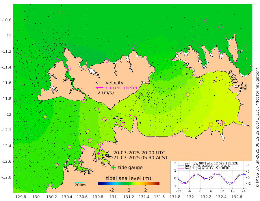 31cm/s 80T +4cm/s rms + 6cm/s 51T. Darwin_C1 52m 59cm/s 91T +4cm/s rms + 7cm/s -161T. Darwin_CW1 22m 7cm/s 73T +4cm/s rms + 8cm/s 61T. Darwin_CW2 34m 34cm/s 37T +3cm/s rms + 9cm/s 98T. Darwin_CW3 22m 29cm/s 94T +5cm/s rms + 7cm/s 88T. Darwin_C3 56m 12cm/s 70T +2cm/s rms + 9cm/s -126T. Darwin_CTbW 22m 18cm/s -77T +1cm/s rms + 1cm/s -47T. DARBGF 30m 24cm/s -57T +4cm/s rms + 3cm/s 80T. NRSDAR 19m -3cm Goodrich Bank 56cm Point Jenny 52cm Native Point 51cm Fish Reef 58cm Tapa Bay 20cm Point Fawcett (Offshore) 68cm Burge Point 32cm Munkunuwa 52cm Beagle A 46cm Parsons Bank 71cm Fenton Patches 65cm Hancox Shoal Area 74cm Nightcliff 65cm Darwin 61cm Charles Point Patches 78cm Glyde Point 108cm Chambers Bay 105cm Point Stuart 78cm Cape Hotham 107cm Christine Reef 118cm West Alligator Head 137cm East Field Island 76cm Two Hills Bay 87cm Camp Point 47cm Medina Inlet South 2cm South Barlow Point 7cm St. Asaph Bay -7cm Cape Van Dieman -12cm Snake Bay 3cm Cache Point 8cm Point Jahleel (Off) 25cm Cape Don -2cm Port Essington -1cm Smith Point - West -3cm NW Peacock Island -1cm North Of Jones Shoal -2cm Peacock Island -7cm Point David -6cm D'urville Point -6cm Copeland Island -4cm One Tree Point