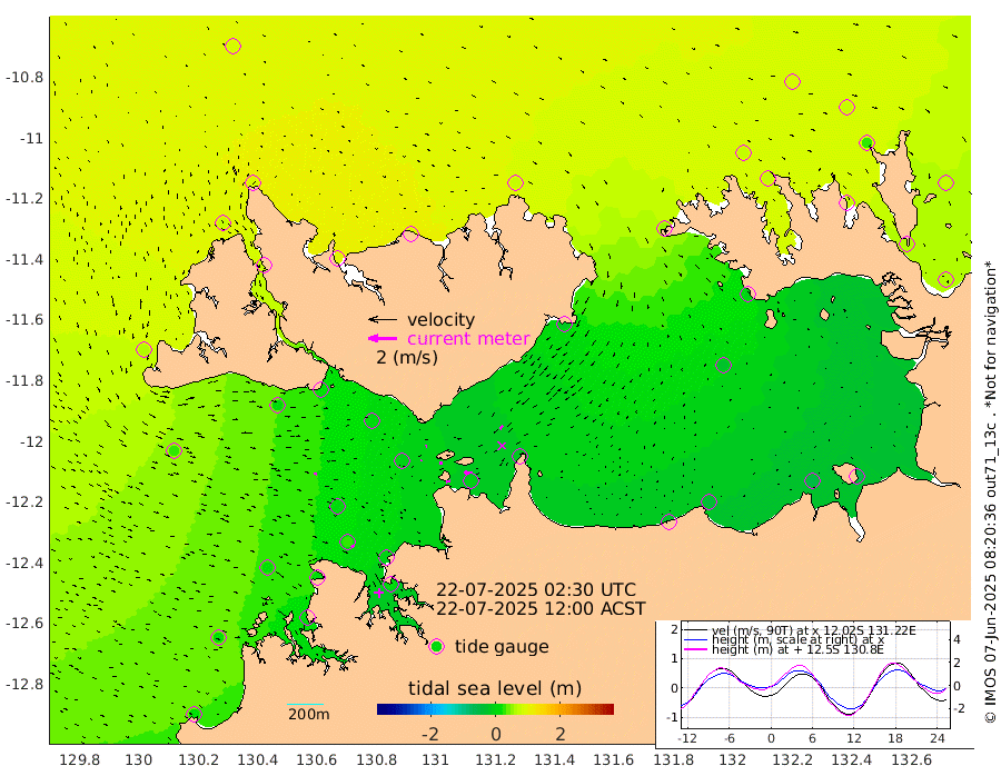 33cm/s -100T +4cm/s rms + 6cm/s 51T. Darwin_C1 52m 55cm/s -91T +4cm/s rms + 7cm/s -161T. Darwin_CW1 22m 6cm/s -118T +4cm/s rms + 8cm/s 61T. Darwin_CW2 34m 31cm/s -137T +3cm/s rms + 9cm/s 98T. Darwin_CW3 22m 16cm/s -92T +5cm/s rms + 7cm/s 88T. Darwin_C3 56m 8cm/s -110T +2cm/s rms + 9cm/s -126T. Darwin_CTbW 22m 20cm/s 96T +1cm/s rms + 1cm/s -47T. DARBGF 30m 19cm/s 130T +4cm/s rms + 3cm/s 80T. NRSDAR 19m 84cm Goodrich Bank 18cm Point Jenny 20cm Native Point 20cm Fish Reef 11cm Tapa Bay 64cm Point Fawcett (Offshore) 3cm Burge Point 7cm Munkunuwa 32cm Beagle A 6cm Parsons Bank 4cm Fenton Patches -3cm Hancox Shoal Area -6cm Nightcliff 4cm Darwin 23cm Charles Point Patches -8cm Glyde Point -33cm Chambers Bay -39cm Point Stuart -12cm Cape Hotham -31cm Christine Reef -51cm West Alligator Head -62cm East Field Island -8cm Two Hills Bay -12cm Camp Point 19cm Medina Inlet South 71cm South Barlow Point 73cm St. Asaph Bay 85cm Cape Van Dieman 90cm Snake Bay 84cm Cache Point 70cm Point Jahleel (Off) 48cm Cape Don 76cm Port Essington 75cm Smith Point - West 77cm NW Peacock Island 82cm North Of Jones Shoal 29cm Peacock Island 65cm Point David 76cm D'urville Point 60cm Copeland Island 70cm One Tree Point