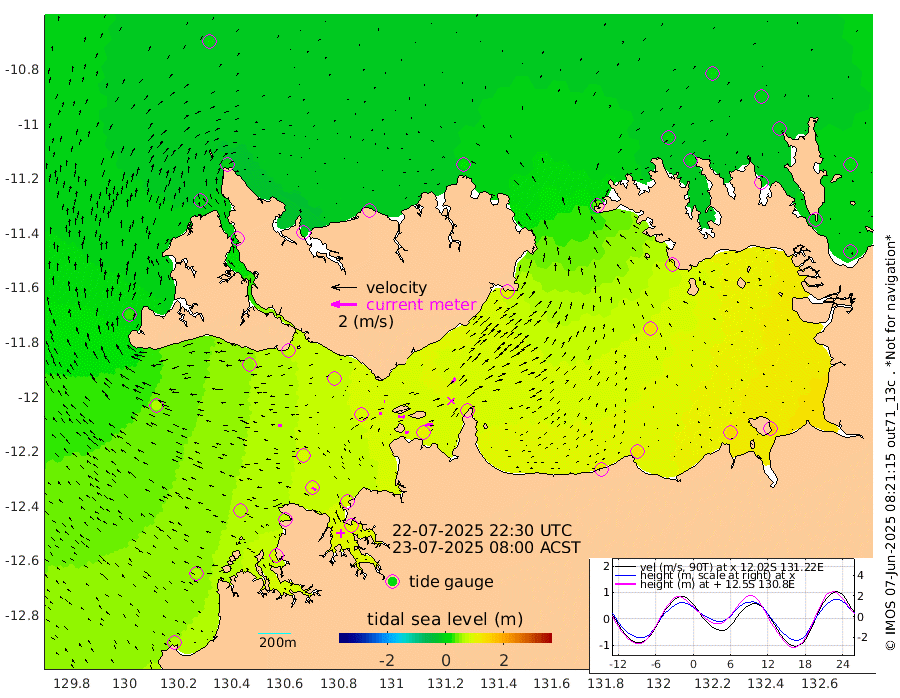 25cm/s 80T +4cm/s rms + 6cm/s 51T. Darwin_C1 52m 64cm/s 89T +4cm/s rms + 7cm/s -161T. Darwin_CW1 22m 18cm/s 75T +4cm/s rms + 8cm/s 61T. Darwin_CW2 34m 41cm/s 37T +3cm/s rms + 9cm/s 98T. Darwin_CW3 22m 55cm/s 92T +5cm/s rms + 7cm/s 88T. Darwin_C3 56m 5cm/s 85T +2cm/s rms + 9cm/s -126T. Darwin_CTbW 22m 27cm/s -77T +1cm/s rms + 1cm/s -47T. DARBGF 30m 36cm/s -52T +4cm/s rms + 3cm/s 80T. NRSDAR 19m 2cm Goodrich Bank 66cm Point Jenny 65cm Native Point 65cm Fish Reef 77cm Tapa Bay 25cm Point Fawcett (Offshore) 95cm Burge Point 54cm Munkunuwa 59cm Beagle A 73cm Parsons Bank 89cm Fenton Patches 89cm Hancox Shoal Area 96cm Nightcliff 101cm Darwin 90cm Charles Point Patches 103cm Glyde Point 134cm Chambers Bay 130cm Point Stuart 101cm Cape Hotham 128cm Christine Reef 145cm West Alligator Head 167cm East Field Island 97cm Two Hills Bay 111cm Camp Point 72cm Medina Inlet South 12cm South Barlow Point 11cm St. Asaph Bay -3cm Cape Van Dieman -4cm Snake Bay 5cm Cache Point 13cm Point Jahleel (Off) 36cm Cape Don 4cm Port Essington 0cm Smith Point - West 0cm NW Peacock Island 2cm North Of Jones Shoal -1cm Peacock Island -1cm Point David -5cm D'urville Point -1cm Copeland Island 3cm One Tree Point