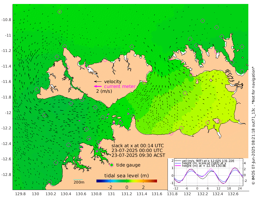 76cm/s -103T +4cm/s rms + 6cm/s 51T. Darwin_C1 52m 29cm/s -85T +4cm/s rms + 7cm/s -161T. Darwin_CW1 22m 35cm/s -112T +4cm/s rms + 8cm/s 61T. Darwin_CW2 34m 16cm/s -102T +3cm/s rms + 9cm/s 98T. Darwin_CW3 22m 16cm/s -98T +5cm/s rms + 7cm/s 88T. Darwin_C3 56m 52cm/s -116T +2cm/s rms + 9cm/s -126T. Darwin_CTbW 22m 38cm/s -85T +1cm/s rms + 1cm/s -47T. DARBGF 30m 38cm/s -58T +4cm/s rms + 3cm/s 80T. NRSDAR 19m 25cm Goodrich Bank -22cm Point Jenny -22cm Native Point -28cm Fish Reef -23cm Tapa Bay -6cm Point Fawcett (Offshore) -16cm Burge Point -40cm Munkunuwa -15cm Beagle A -29cm Parsons Bank -18cm Fenton Patches -15cm Hancox Shoal Area -17cm Nightcliff -12cm Darwin -6cm Charles Point Patches 17cm Glyde Point 59cm Chambers Bay 55cm Point Stuart 25cm Cape Hotham 56cm Christine Reef 63cm West Alligator Head 88cm East Field Island 37cm Two Hills Bay 51cm Camp Point -21cm Medina Inlet South -5cm South Barlow Point 7cm St. Asaph Bay 18cm Cape Van Dieman 18cm Snake Bay 22cm Cache Point 19cm Point Jahleel (Off) 16cm Cape Don 11cm Port Essington 6cm Smith Point - West 10cm NW Peacock Island 21cm North Of Jones Shoal 5cm Peacock Island 0cm Point David 3cm D'urville Point -2cm Copeland Island 7cm One Tree Point