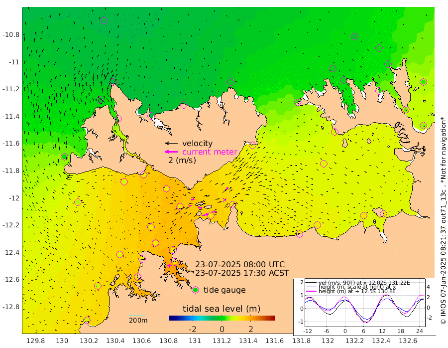 106cm/s 78T +4cm/s rms + 6cm/s 51T. Darwin_C1 52m 81cm/s 91T +4cm/s rms + 7cm/s -161T. Darwin_CW1 22m 41cm/s 71T +4cm/s rms + 8cm/s 61T. Darwin_CW2 34m 69cm/s 41T +3cm/s rms + 9cm/s 98T. Darwin_CW3 22m 62cm/s 90T +5cm/s rms + 7cm/s 88T. Darwin_C3 56m 51cm/s 64T +2cm/s rms + 9cm/s -126T. Darwin_CTbW 22m 4cm/s -47T +1cm/s rms + 1cm/s -47T. DARBGF 30m 7cm/s -25T +4cm/s rms + 3cm/s 80T. NRSDAR 19m -50cm Goodrich Bank 78cm Point Jenny 77cm Native Point 92cm Fish Reef 97cm Tapa Bay 1cm Point Fawcett (Offshore) 116cm Burge Point 83cm Munkunuwa 60cm Beagle A 120cm Parsons Bank 111cm Fenton Patches 119cm Hancox Shoal Area 115cm Nightcliff 133cm Darwin 108cm Charles Point Patches 114cm Glyde Point 103cm Chambers Bay 117cm Point Stuart 106cm Cape Hotham 92cm Christine Reef 124cm West Alligator Head 125cm East Field Island 91cm Two Hills Bay 90cm Camp Point 91cm Medina Inlet South -5cm South Barlow Point -31cm St. Asaph Bay -46cm Cape Van Dieman -41cm Snake Bay -41cm Cache Point -20cm Point Jahleel (Off) 32cm Cape Don 0cm Port Essington -3cm Smith Point - West 1cm NW Peacock Island -27cm North Of Jones Shoal -5cm Peacock Island 44cm Point David 9cm D'urville Point 49cm Copeland Island 33cm One Tree Point