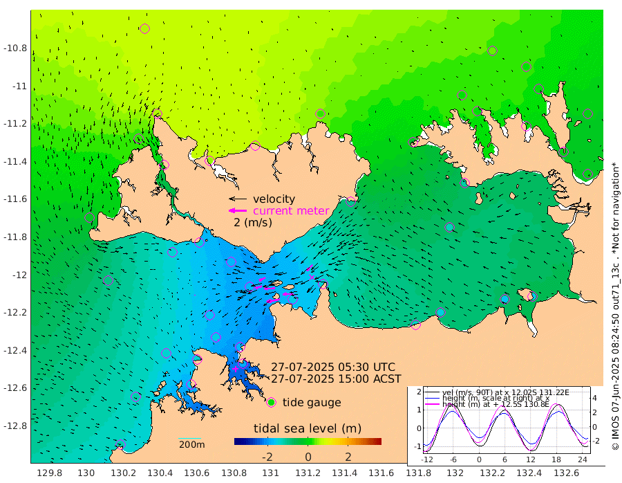 155cm/s -101T +4cm/s rms + 6cm/s 51T. Darwin_C1 52m 119cm/s -91T +4cm/s rms + 7cm/s -161T. Darwin_CW1 22m 74cm/s -106T +4cm/s rms + 8cm/s 61T. Darwin_CW2 34m 91cm/s -136T +3cm/s rms + 9cm/s 98T. Darwin_CW3 22m 122cm/s -91T +5cm/s rms + 7cm/s 88T. Darwin_C3 56m 77cm/s -116T +2cm/s rms + 9cm/s -126T. Darwin_CTbW 22m 7cm/s -168T +1cm/s rms + 1cm/s -47T. DARBGF 30m 11cm/s -172T +4cm/s rms + 3cm/s 80T. NRSDAR 19m 62cm Goodrich Bank -117cm Point Jenny -114cm Native Point -141cm Fish Reef -143cm Tapa Bay -19cm Point Fawcett (Offshore) -168cm Burge Point -140cm Munkunuwa -95cm Beagle A -171cm Parsons Bank -162cm Fenton Patches -169cm Hancox Shoal Area -173cm Nightcliff -191cm Darwin -155cm Charles Point Patches -151cm Glyde Point -144cm Chambers Bay -148cm Point Stuart -138cm Cape Hotham -126cm Christine Reef -164cm West Alligator Head -162cm East Field Island -117cm Two Hills Bay -105cm Camp Point -143cm Medina Inlet South -7cm South Barlow Point 23cm St. Asaph Bay 60cm Cape Van Dieman 56cm Snake Bay 52cm Cache Point 26cm Point Jahleel (Off) -31cm Cape Don 17cm Port Essington 14cm Smith Point - West 19cm NW Peacock Island 40cm North Of Jones Shoal 12cm Peacock Island -4cm Point David 12cm D'urville Point -11cm Copeland Island -1cm One Tree Point
