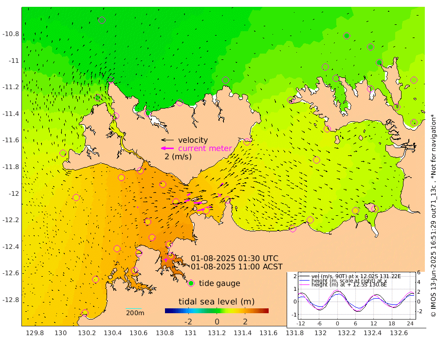 117cm/s 78T +4cm/s rms + 6cm/s 51T. Darwin_C1 52m 81cm/s 92T +4cm/s rms + 7cm/s -161T. Darwin_CW1 22m 81cm/s 73T +4cm/s rms + 8cm/s 61T. Darwin_CW2 34m 70cm/s 44T +3cm/s rms + 9cm/s 98T. Darwin_CW3 22m 135cm/s 89T +5cm/s rms + 7cm/s 88T. Darwin_C3 56m 61cm/s 66T +2cm/s rms + 9cm/s -126T. Darwin_CTbW 22m 12cm/s 60T +1cm/s rms + 1cm/s -47T. DARBGF 30m 8cm/s 42T +4cm/s rms + 3cm/s 80T. NRSDAR 19m 0cm Goodrich Bank 120cm Point Jenny 119cm Native Point 136cm Fish Reef 139cm Tapa Bay 58cm Point Fawcett (Offshore) 155cm Burge Point 130cm Munkunuwa 102cm Beagle A 161cm Parsons Bank 148cm Fenton Patches 157cm Hancox Shoal Area 166cm Nightcliff 183cm Darwin 160cm Charles Point Patches 139cm Glyde Point 123cm Chambers Bay 118cm Point Stuart 122cm Cape Hotham 110cm Christine Reef 127cm West Alligator Head 120cm East Field Island 109cm Two Hills Bay 102cm Camp Point 147cm Medina Inlet South 54cm South Barlow Point 26cm St. Asaph Bay 1cm Cape Van Dieman 14cm Snake Bay 6cm Cache Point 23cm Point Jahleel (Off) 67cm Cape Don 35cm Port Essington 35cm Smith Point - West 34cm NW Peacock Island 22cm North Of Jones Shoal 10cm Peacock Island 51cm Point David 39cm D'urville Point 52cm Copeland Island 54cm One Tree Point