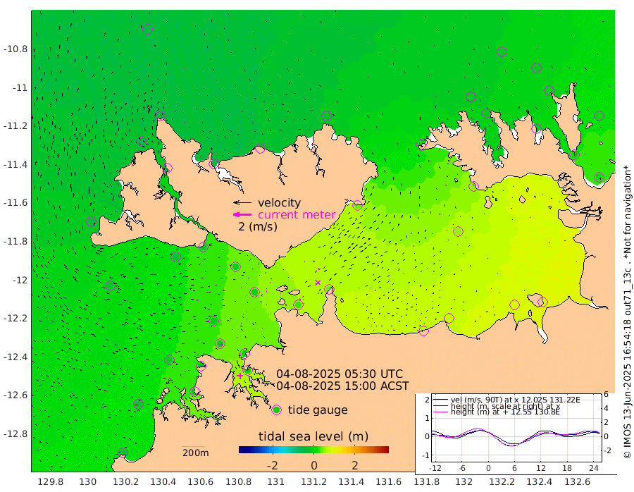 8cm/s 76T +4cm/s rms + 6cm/s 51T. Darwin_C1 52m 11cm/s 79T +4cm/s rms + 7cm/s -161T. Darwin_CW1 22m 6cm/s -107T +4cm/s rms + 8cm/s 61T. Darwin_CW2 34m 15cm/s 33T +3cm/s rms + 9cm/s 98T. Darwin_CW3 22m 1cm/s 166T +5cm/s rms + 7cm/s 88T. Darwin_C3 56m 6cm/s 67T +2cm/s rms + 9cm/s -126T. Darwin_CTbW 22m 21cm/s -86T +1cm/s rms + 1cm/s -47T. DARBGF 30m 23cm/s -54T +4cm/s rms + 3cm/s 80T. NRSDAR 19m -47cm Goodrich Bank -27cm Point Jenny -30cm Native Point -18cm Fish Reef -24cm Tapa Bay -42cm Point Fawcett (Offshore) -17cm Burge Point -34cm Munkunuwa -33cm Beagle A -11cm Parsons Bank -17cm Fenton Patches -5cm Hancox Shoal Area -5cm Nightcliff -3cm Darwin -17cm Charles Point Patches 24cm Glyde Point 57cm Chambers Bay 72cm Point Stuart 37cm Cape Hotham 46cm Christine Reef 80cm West Alligator Head 95cm East Field Island 47cm Two Hills Bay 40cm Camp Point -21cm Medina Inlet South -46cm South Barlow Point -51cm St. Asaph Bay -47cm Cape Van Dieman -42cm Snake Bay -41cm Cache Point -30cm Point Jahleel (Off) 1cm Cape Don -18cm Port Essington -22cm Smith Point - West -17cm NW Peacock Island -22cm North Of Jones Shoal -5cm Peacock Island 9cm Point David -15cm D'urville Point 12cm Copeland Island 8cm One Tree Point