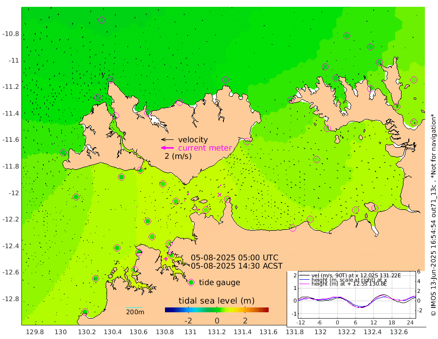 41cm/s 77T +4cm/s rms + 6cm/s 51T. Darwin_C1 52m 14cm/s 70T +4cm/s rms + 7cm/s -161T. Darwin_CW1 22m 6cm/s 79T +4cm/s rms + 8cm/s 61T. Darwin_CW2 34m 20cm/s 47T +3cm/s rms + 9cm/s 98T. Darwin_CW3 22m 5cm/s 96T +5cm/s rms + 7cm/s 88T. Darwin_C3 56m 33cm/s 63T +2cm/s rms + 9cm/s -126T. Darwin_CTbW 22m 3cm/s -79T +1cm/s rms + 1cm/s -47T. DARBGF 30m 5cm/s -35T +4cm/s rms + 3cm/s 80T. NRSDAR 19m -14cm Goodrich Bank 16cm Point Jenny 16cm Native Point 17cm Fish Reef 21cm Tapa Bay -2cm Point Fawcett (Offshore) 22cm Burge Point 9cm Munkunuwa 9cm Beagle A 29cm Parsons Bank 22cm Fenton Patches 33cm Hancox Shoal Area 38cm Nightcliff 34cm Darwin 23cm Charles Point Patches 38cm Glyde Point 45cm Chambers Bay 50cm Point Stuart 41cm Cape Hotham 40cm Christine Reef 53cm West Alligator Head 55cm East Field Island 43cm Two Hills Bay 39cm Camp Point 19cm Medina Inlet South -3cm South Barlow Point -12cm St. Asaph Bay -12cm Cape Van Dieman -4cm Snake Bay -9cm Cache Point 0cm Point Jahleel (Off) 22cm Cape Don 9cm Port Essington 9cm Smith Point - West 13cm NW Peacock Island 6cm North Of Jones Shoal 4cm Peacock Island 38cm Point David 17cm D'urville Point 40cm Copeland Island 34cm One Tree Point