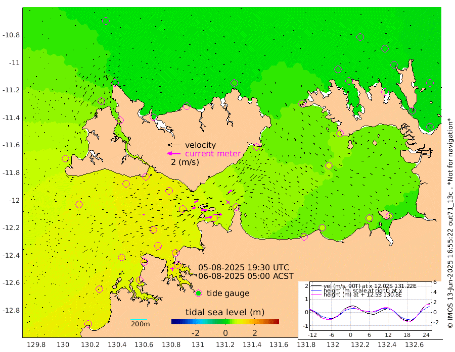 116cm/s 78T +4cm/s rms + 6cm/s 51T. Darwin_C1 52m 110cm/s 92T +4cm/s rms + 7cm/s -161T. Darwin_CW1 22m 57cm/s 73T +4cm/s rms + 8cm/s 61T. Darwin_CW2 34m 63cm/s 44T +3cm/s rms + 9cm/s 98T. Darwin_CW3 22m 89cm/s 90T +5cm/s rms + 7cm/s 88T. Darwin_C3 56m 64cm/s 66T +2cm/s rms + 9cm/s -126T. Darwin_CTbW 22m 25cm/s 82T +1cm/s rms + 1cm/s -47T. DARBGF 30m 20cm/s 114T +4cm/s rms + 3cm/s 80T. NRSDAR 19m 21cm Goodrich Bank 121cm Point Jenny 119cm Native Point 125cm Fish Reef 129cm Tapa Bay 80cm Point Fawcett (Offshore) 128cm Burge Point 110cm Munkunuwa 114cm Beagle A 110cm Parsons Bank 133cm Fenton Patches 119cm Hancox Shoal Area 136cm Nightcliff 132cm Darwin 130cm Charles Point Patches 102cm Glyde Point 89cm Chambers Bay 78cm Point Stuart 85cm Cape Hotham 82cm Christine Reef 85cm West Alligator Head 82cm East Field Island 70cm Two Hills Bay 75cm Camp Point 121cm Medina Inlet South 56cm South Barlow Point 52cm St. Asaph Bay 21cm Cape Van Dieman 19cm Snake Bay 27cm Cache Point 30cm Point Jahleel (Off) 45cm Cape Don 22cm Port Essington 24cm Smith Point - West 16cm NW Peacock Island 19cm North Of Jones Shoal 6cm Peacock Island 5cm Point David 17cm D'urville Point 5cm Copeland Island 10cm One Tree Point