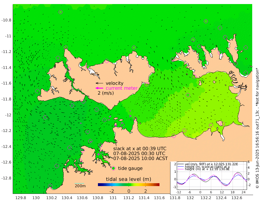 72cm/s -103T +4cm/s rms + 6cm/s 51T. Darwin_C1 52m 32cm/s -86T +4cm/s rms + 7cm/s -161T. Darwin_CW1 22m 27cm/s -114T +4cm/s rms + 8cm/s 61T. Darwin_CW2 34m 20cm/s -117T +3cm/s rms + 9cm/s 98T. Darwin_CW3 22m 4cm/s -105T +5cm/s rms + 7cm/s 88T. Darwin_C3 56m 50cm/s -115T +2cm/s rms + 9cm/s -126T. Darwin_CTbW 22m 30cm/s -85T +1cm/s rms + 1cm/s -47T. DARBGF 30m 29cm/s -59T +4cm/s rms + 3cm/s 80T. NRSDAR 19m 32cm Goodrich Bank -17cm Point Jenny -16cm Native Point -13cm Fish Reef -16cm Tapa Bay 5cm Point Fawcett (Offshore) -12cm Burge Point -24cm Munkunuwa -11cm Beagle A -16cm Parsons Bank -16cm Fenton Patches -13cm Hancox Shoal Area -27cm Nightcliff -4cm Darwin 1cm Charles Point Patches 17cm Glyde Point 40cm Chambers Bay 47cm Point Stuart 24cm Cape Hotham 33cm Christine Reef 52cm West Alligator Head 68cm East Field Island 35cm Two Hills Bay 37cm Camp Point -11cm Medina Inlet South 5cm South Barlow Point 13cm St. Asaph Bay 27cm Cape Van Dieman 28cm Snake Bay 30cm Cache Point 26cm Point Jahleel (Off) 21cm Cape Don 24cm Port Essington 17cm Smith Point - West 21cm NW Peacock Island 24cm North Of Jones Shoal 7cm Peacock Island 16cm Point David 16cm D'urville Point 12cm Copeland Island 19cm One Tree Point