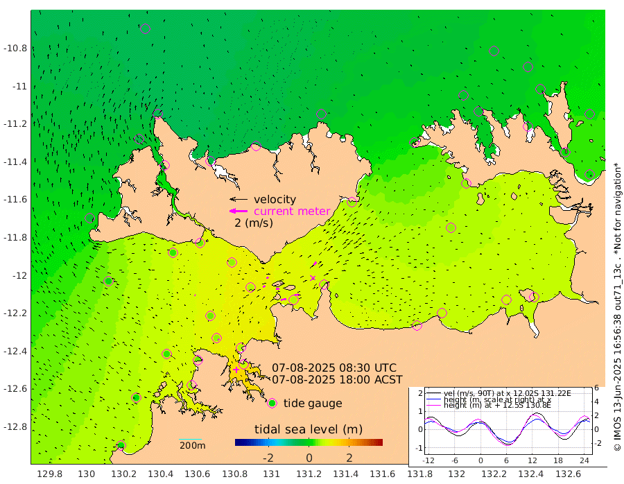 59cm/s 79T +4cm/s rms + 6cm/s 51T. Darwin_C1 52m 51cm/s 93T +4cm/s rms + 7cm/s -161T. Darwin_CW1 22m 27cm/s 67T +4cm/s rms + 8cm/s 61T. Darwin_CW2 34m 47cm/s 39T +3cm/s rms + 9cm/s 98T. Darwin_CW3 22m 38cm/s 90T +5cm/s rms + 7cm/s 88T. Darwin_C3 56m 26cm/s 66T +2cm/s rms + 9cm/s -126T. Darwin_CTbW 22m 9cm/s -76T +1cm/s rms + 1cm/s -47T. DARBGF 30m 12cm/s -49T +4cm/s rms + 3cm/s 80T. NRSDAR 19m -62cm Goodrich Bank 19cm Point Jenny 18cm Native Point 32cm Fish Reef 38cm Tapa Bay -28cm Point Fawcett (Offshore) 45cm Burge Point 30cm Munkunuwa 4cm Beagle A 53cm Parsons Bank 42cm Fenton Patches 59cm Hancox Shoal Area 62cm Nightcliff 68cm Darwin 46cm Charles Point Patches 59cm Glyde Point 66cm Chambers Bay 73cm Point Stuart 61cm Cape Hotham 48cm Christine Reef 80cm West Alligator Head 85cm East Field Island 50cm Two Hills Bay 52cm Camp Point 36cm Medina Inlet South -33cm South Barlow Point -48cm St. Asaph Bay -59cm Cape Van Dieman -52cm Snake Bay -57cm Cache Point -39cm Point Jahleel (Off) -2cm Cape Don -26cm Port Essington -30cm Smith Point - West -26cm NW Peacock Island -37cm North Of Jones Shoal -10cm Peacock Island 12cm Point David -22cm D'urville Point 16cm Copeland Island 5cm One Tree Point