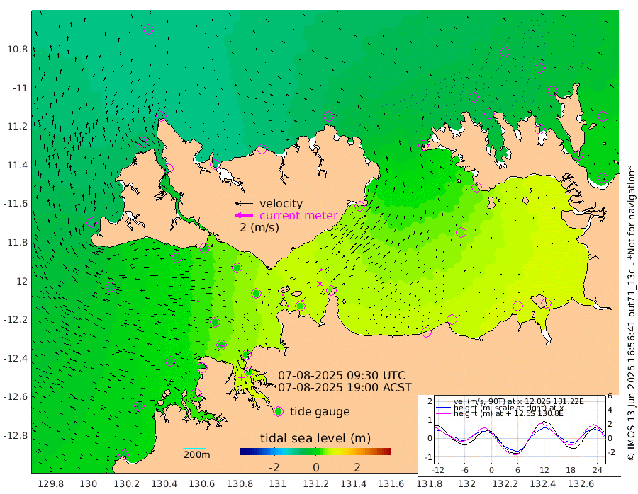 11cm/s 91T +4cm/s rms + 6cm/s 51T. Darwin_C1 52m 29cm/s 91T +4cm/s rms + 7cm/s -161T. Darwin_CW1 22m 11cm/s 51T +4cm/s rms + 8cm/s 61T. Darwin_CW2 34m 26cm/s 37T +3cm/s rms + 9cm/s 98T. Darwin_CW3 22m 17cm/s 89T +5cm/s rms + 7cm/s 88T. Darwin_C3 56m 3cm/s -122T +2cm/s rms + 9cm/s -126T. Darwin_CTbW 22m 29cm/s -85T +1cm/s rms + 1cm/s -47T. DARBGF 30m 37cm/s -56T +4cm/s rms + 3cm/s 80T. NRSDAR 19m -87cm Goodrich Bank -37cm Point Jenny -38cm Native Point -19cm Fish Reef -18cm Tapa Bay -71cm Point Fawcett (Offshore) -8cm Burge Point -19cm Munkunuwa -49cm Beagle A 3cm Parsons Bank -12cm Fenton Patches 10cm Hancox Shoal Area 6cm Nightcliff 18cm Darwin -6cm Charles Point Patches 29cm Glyde Point 57cm Chambers Bay 71cm Point Stuart 40cm Cape Hotham 36cm Christine Reef 81cm West Alligator Head 96cm East Field Island 37cm Two Hills Bay 37cm Camp Point -14cm Medina Inlet South -73cm South Barlow Point -83cm St. Asaph Bay -87cm Cape Van Dieman -81cm Snake Bay -84cm Cache Point -64cm Point Jahleel (Off) -28cm Cape Don -52cm Port Essington -58cm Smith Point - West -53cm NW Peacock Island -60cm North Of Jones Shoal -19cm Peacock Island -16cm Point David -50cm D'urville Point -10cm Copeland Island -21cm One Tree Point
