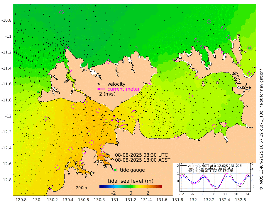 109cm/s 78T +4cm/s rms + 6cm/s 51T. Darwin_C1 52m 75cm/s 92T +4cm/s rms + 7cm/s -161T. Darwin_CW1 22m 48cm/s 72T +4cm/s rms + 8cm/s 61T. Darwin_CW2 34m 70cm/s 41T +3cm/s rms + 9cm/s 98T. Darwin_CW3 22m 67cm/s 89T +5cm/s rms + 7cm/s 88T. Darwin_C3 56m 52cm/s 65T +2cm/s rms + 9cm/s -126T. Darwin_CTbW 22m 11cm/s 79T +1cm/s rms + 1cm/s -47T. DARBGF 30m 11cm/s 100T +4cm/s rms + 3cm/s 80T. NRSDAR 19m -38cm Goodrich Bank 83cm Point Jenny 83cm Native Point 91cm Fish Reef 107cm Tapa Bay 17cm Point Fawcett (Offshore) 111cm Burge Point 93cm Munkunuwa 62cm Beagle A 118cm Parsons Bank 108cm Fenton Patches 122cm Hancox Shoal Area 129cm Nightcliff 134cm Darwin 113cm Charles Point Patches 98cm Glyde Point 79cm Chambers Bay 77cm Point Stuart 87cm Cape Hotham 64cm Christine Reef 81cm West Alligator Head 74cm East Field Island 65cm Two Hills Bay 71cm Camp Point 99cm Medina Inlet South 10cm South Barlow Point -12cm St. Asaph Bay -33cm Cape Van Dieman -25cm Snake Bay -32cm Cache Point -14cm Point Jahleel (Off) 25cm Cape Don 0cm Port Essington -2cm Smith Point - West 1cm NW Peacock Island -16cm North Of Jones Shoal -2cm Peacock Island 41cm Point David 8cm D'urville Point 45cm Copeland Island 30cm One Tree Point