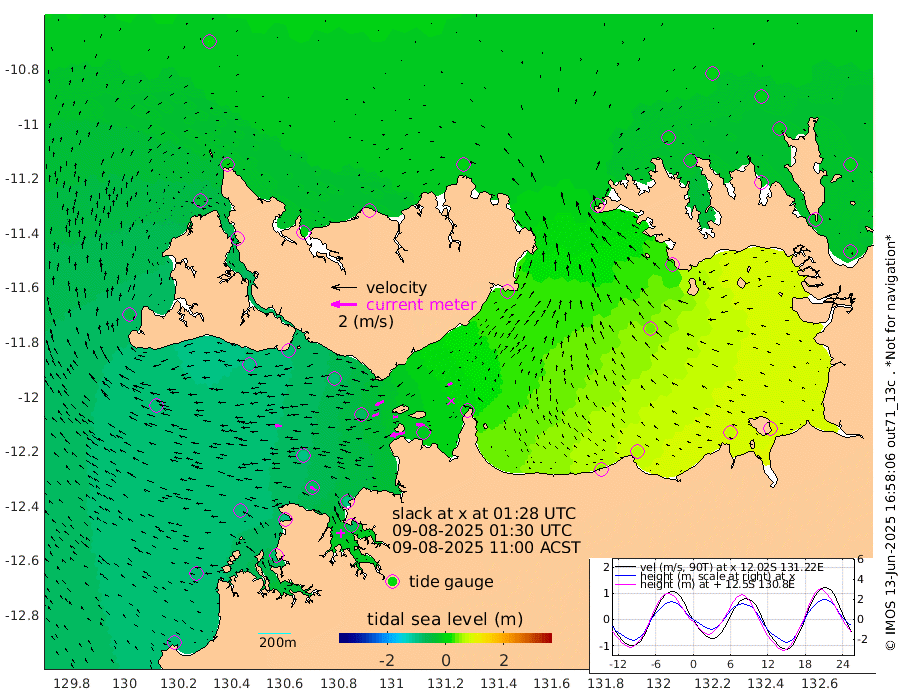 119cm/s -102T +4cm/s rms + 6cm/s 51T. Darwin_C1 52m 66cm/s -88T +4cm/s rms + 7cm/s -161T. Darwin_CW1 22m 56cm/s -111T +4cm/s rms + 8cm/s 61T. Darwin_CW2 34m 38cm/s -120T +3cm/s rms + 9cm/s 98T. Darwin_CW3 22m 38cm/s -94T +5cm/s rms + 7cm/s 88T. Darwin_C3 56m 72cm/s -116T +2cm/s rms + 9cm/s -126T. Darwin_CTbW 22m 54cm/s -87T +1cm/s rms + 1cm/s -47T. DARBGF 30m 51cm/s -59T +4cm/s rms + 3cm/s 80T. NRSDAR 19m 0cm Goodrich Bank -86cm Point Jenny -86cm Native Point -84cm Fish Reef -90cm Tapa Bay -51cm Point Fawcett (Offshore) -88cm Burge Point -101cm Munkunuwa -81cm Beagle A -89cm Parsons Bank -91cm Fenton Patches -77cm Hancox Shoal Area -97cm Nightcliff -76cm Darwin -71cm Charles Point Patches -18cm Glyde Point 47cm Chambers Bay 61cm Point Stuart 2cm Cape Hotham 38cm Christine Reef 72cm West Alligator Head 104cm East Field Island 32cm Two Hills Bay 31cm Camp Point -83cm Medina Inlet South -50cm South Barlow Point -34cm St. Asaph Bay -8cm Cape Van Dieman -10cm Snake Bay -2cm Cache Point -5cm Point Jahleel (Off) -4cm Cape Don -5cm Port Essington -13cm Smith Point - West -8cm NW Peacock Island 0cm North Of Jones Shoal -2cm Peacock Island -13cm Point David -15cm D'urville Point -14cm Copeland Island -6cm One Tree Point