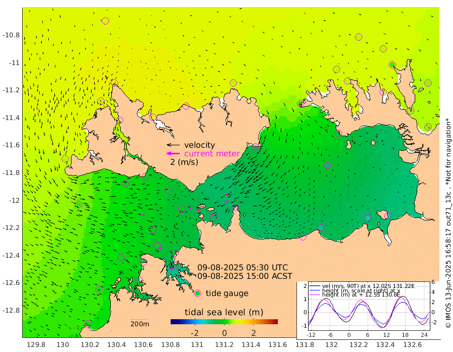 24cm/s -101T +4cm/s rms + 6cm/s 51T. Darwin_C1 52m 38cm/s -89T +4cm/s rms + 7cm/s -161T. Darwin_CW1 22m 23cm/s -108T +4cm/s rms + 8cm/s 61T. Darwin_CW2 34m 47cm/s -140T +3cm/s rms + 9cm/s 98T. Darwin_CW3 22m 55cm/s -91T +5cm/s rms + 7cm/s 88T. Darwin_C3 56m 4cm/s 36T +2cm/s rms + 9cm/s -126T. Darwin_CTbW 22m 34cm/s 100T +1cm/s rms + 1cm/s -47T. DARBGF 30m 38cm/s 133T +4cm/s rms + 3cm/s 80T. NRSDAR 19m 80cm Goodrich Bank 17cm Point Jenny 20cm Native Point 2cm Fish Reef 3cm Tapa Bay 59cm Point Fawcett (Offshore) -14cm Burge Point 0cm Munkunuwa 28cm Beagle A -15cm Parsons Bank -11cm Fenton Patches -25cm Hancox Shoal Area -30cm Nightcliff -34cm Darwin -8cm Charles Point Patches -46cm Glyde Point -89cm Chambers Bay -94cm Point Stuart -53cm Cape Hotham -73cm Christine Reef -114cm West Alligator Head -133cm East Field Island -55cm Two Hills Bay -51cm Camp Point -5cm Medina Inlet South 63cm South Barlow Point 70cm St. Asaph Bay 84cm Cape Van Dieman 82cm Snake Bay 79cm Cache Point 60cm Point Jahleel (Off) 27cm Cape Don 63cm Port Essington 64cm Smith Point - West 66cm NW Peacock Island 64cm North Of Jones Shoal 23cm Peacock Island 58cm Point David 67cm D'urville Point 53cm Copeland Island 53cm One Tree Point