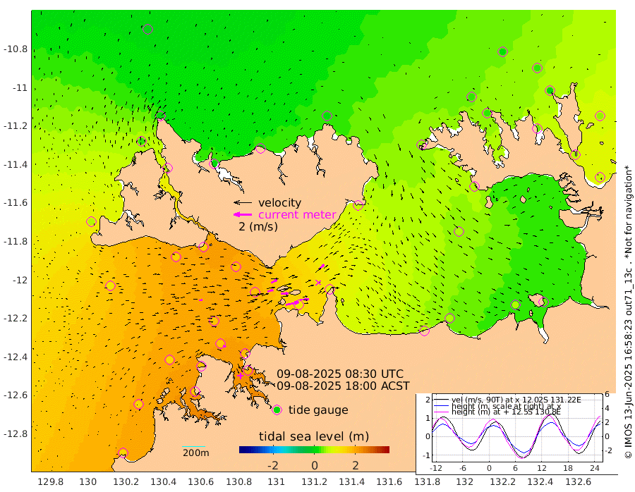 145cm/s 77T +4cm/s rms + 6cm/s 51T. Darwin_C1 52m 97cm/s 89T +4cm/s rms + 7cm/s -161T. Darwin_CW1 22m 64cm/s 74T +4cm/s rms + 8cm/s 61T. Darwin_CW2 34m 81cm/s 44T +3cm/s rms + 9cm/s 98T. Darwin_CW3 22m 86cm/s 89T +5cm/s rms + 7cm/s 88T. Darwin_C3 56m 72cm/s 65T +2cm/s rms + 9cm/s -126T. Darwin_CTbW 22m 33cm/s 87T +1cm/s rms + 1cm/s -47T. DARBGF 30m 34cm/s 112T +4cm/s rms + 3cm/s 80T. NRSDAR 19m -4cm Goodrich Bank 141cm Point Jenny 142cm Native Point 144cm Fish Reef 166cm Tapa Bay 66cm Point Fawcett (Offshore) 167cm Burge Point 150cm Munkunuwa 118cm Beagle A 171cm Parsons Bank 163cm Fenton Patches 171cm Hancox Shoal Area 179cm Nightcliff 184cm Darwin 168cm Charles Point Patches 121cm Glyde Point 71cm Chambers Bay 61cm Point Stuart 97cm Cape Hotham 63cm Christine Reef 59cm West Alligator Head 38cm East Field Island 64cm Two Hills Bay 74cm Camp Point 152cm Medina Inlet South 59cm South Barlow Point 32cm St. Asaph Bay 4cm Cape Van Dieman 11cm Snake Bay 2cm Cache Point 17cm Point Jahleel (Off) 51cm Cape Don 31cm Port Essington 32cm Smith Point - West 32cm NW Peacock Island 12cm North Of Jones Shoal 7cm Peacock Island 67cm Point David 41cm D'urville Point 70cm Copeland Island 55cm One Tree Point