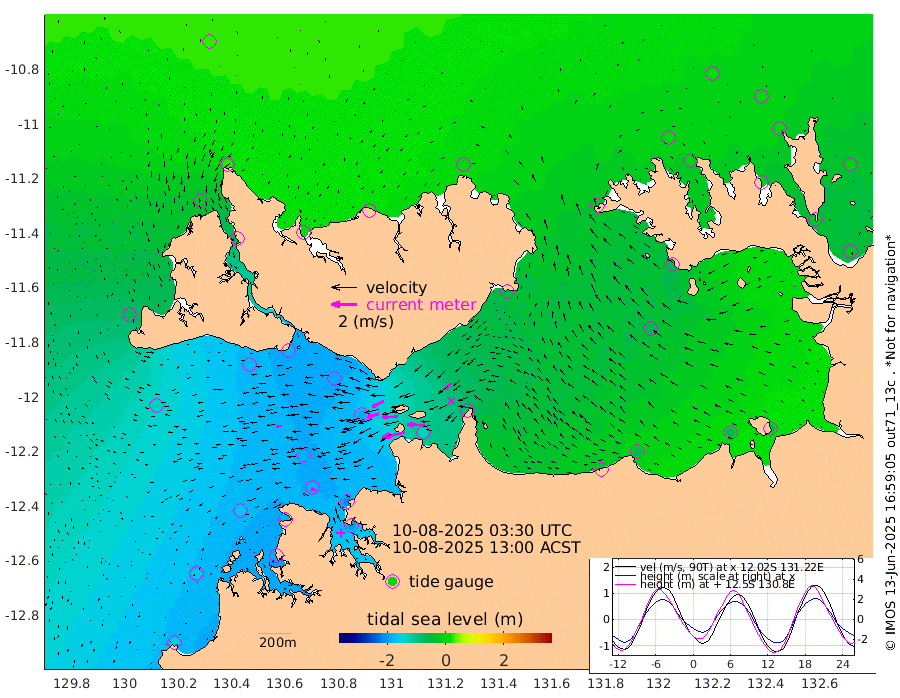 181cm/s -101T +4cm/s rms + 6cm/s 51T. Darwin_C1 52m 134cm/s -90T +4cm/s rms + 7cm/s -161T. Darwin_CW1 22m 94cm/s -108T +4cm/s rms + 8cm/s 61T. Darwin_CW2 34m 81cm/s -134T +3cm/s rms + 9cm/s 98T. Darwin_CW3 22m 121cm/s -91T +5cm/s rms + 7cm/s 88T. Darwin_C3 56m 101cm/s -115T +2cm/s rms + 9cm/s -126T. Darwin_CTbW 22m 43cm/s -93T +1cm/s rms + 1cm/s -47T. DARBGF 30m 39cm/s -69T +4cm/s rms + 3cm/s 80T. NRSDAR 19m 30cm Goodrich Bank -152cm Point Jenny -152cm Native Point -162cm Fish Reef -177cm Tapa Bay -60cm Point Fawcett (Offshore) -190cm Burge Point -179cm Munkunuwa -132cm Beagle A -190cm Parsons Bank -187cm Fenton Patches -184cm Hancox Shoal Area -206cm Nightcliff -200cm Darwin -173cm Charles Point Patches -125cm Glyde Point -73cm Chambers Bay -59cm Point Stuart -98cm Cape Hotham -66cm Christine Reef -62cm West Alligator Head -38cm East Field Island -60cm Two Hills Bay -62cm Camp Point -171cm Medina Inlet South -52cm South Barlow Point -21cm St. Asaph Bay 24cm Cape Van Dieman 17cm Snake Bay 25cm Cache Point 6cm Point Jahleel (Off) -30cm Cape Don 3cm Port Essington -3cm Smith Point - West 3cm NW Peacock Island 18cm North Of Jones Shoal 4cm Peacock Island -16cm Point David -5cm D'urville Point -20cm Copeland Island -9cm One Tree Point