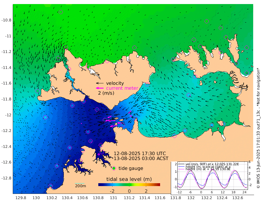 197cm/s -101T +4cm/s rms + 6cm/s 51T. Darwin_C1 52m 152cm/s -90T +4cm/s rms + 7cm/s -161T. Darwin_CW1 22m 119cm/s -107T +4cm/s rms + 8cm/s 61T. Darwin_CW2 34m 103cm/s -134T +3cm/s rms + 9cm/s 98T. Darwin_CW3 22m 191cm/s -91T +5cm/s rms + 7cm/s 88T. Darwin_C3 56m 106cm/s -115T +2cm/s rms + 9cm/s -126T. Darwin_CTbW 22m 22cm/s -112T +1cm/s rms + 1cm/s -47T. DARBGF 30m 15cm/s -112T +4cm/s rms + 3cm/s 80T. NRSDAR 19m 20cm Goodrich Bank -210cm Point Jenny -210cm Native Point -219cm Fish Reef -246cm Tapa Bay -85cm Point Fawcett (Offshore) -269cm Burge Point -232cm Munkunuwa -165cm Beagle A -271cm Parsons Bank -247cm Fenton Patches -268cm Hancox Shoal Area -274cm Nightcliff -299cm Darwin -264cm Charles Point Patches -216cm Glyde Point -180cm Chambers Bay -168cm Point Stuart -182cm Cape Hotham -166cm Christine Reef -179cm West Alligator Head -161cm East Field Island -149cm Two Hills Bay -154cm Camp Point -241cm Medina Inlet South -72cm South Barlow Point -30cm St. Asaph Bay 16cm Cape Van Dieman 6cm Snake Bay 12cm Cache Point -14cm Point Jahleel (Off) -84cm Cape Don -31cm Port Essington -28cm Smith Point - West -26cm NW Peacock Island -1cm North Of Jones Shoal -3cm Peacock Island -61cm Point David -34cm D'urville Point -64cm Copeland Island -56cm One Tree Point