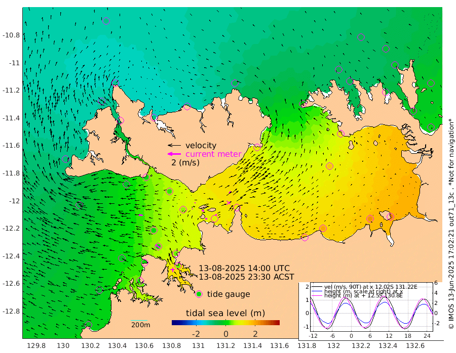 29cm/s 83T +4cm/s rms + 6cm/s 51T. Darwin_C1 52m 23cm/s 87T +4cm/s rms + 7cm/s -161T. Darwin_CW1 22m 10cm/s 61T +4cm/s rms + 8cm/s 61T. Darwin_CW2 34m 40cm/s 41T +3cm/s rms + 9cm/s 98T. Darwin_CW3 22m 39cm/s 92T +5cm/s rms + 7cm/s 88T. Darwin_C3 56m 11cm/s 67T +2cm/s rms + 9cm/s -126T. Darwin_CTbW 22m 65cm/s -84T +1cm/s rms + 1cm/s -47T. DARBGF 30m 81cm/s -54T +4cm/s rms + 3cm/s 80T. NRSDAR 19m -96cm Goodrich Bank -19cm Point Jenny -24cm Native Point -17cm Fish Reef 1cm Tapa Bay -85cm Point Fawcett (Offshore) 9cm Burge Point -29cm Munkunuwa -46cm Beagle A 23cm Parsons Bank 8cm Fenton Patches 53cm Hancox Shoal Area 38cm Nightcliff 44cm Darwin 13cm Charles Point Patches 92cm Glyde Point 178cm Chambers Bay 193cm Point Stuart 113cm Cape Hotham 160cm Christine Reef 220cm West Alligator Head 256cm East Field Island 127cm Two Hills Bay 120cm Camp Point -11cm Medina Inlet South -96cm South Barlow Point -101cm St. Asaph Bay -102cm Cape Van Dieman -100cm Snake Bay -87cm Cache Point -59cm Point Jahleel (Off) 0cm Cape Don -49cm Port Essington -48cm Smith Point - West -42cm NW Peacock Island -61cm North Of Jones Shoal -19cm Peacock Island -2cm Point David -41cm D'urville Point 8cm Copeland Island -9cm One Tree Point