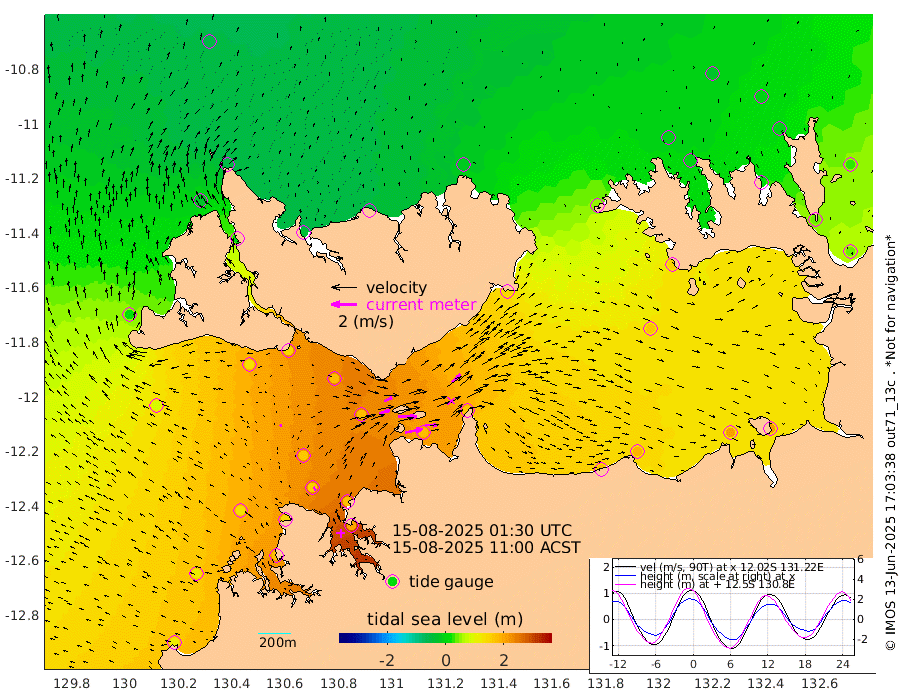 135cm/s 79T +4cm/s rms + 6cm/s 51T. Darwin_C1 52m 93cm/s 92T +4cm/s rms + 7cm/s -161T. Darwin_CW1 22m 85cm/s 71T +4cm/s rms + 8cm/s 61T. Darwin_CW2 34m 87cm/s 45T +3cm/s rms + 9cm/s 98T. Darwin_CW3 22m 146cm/s 90T +5cm/s rms + 7cm/s 88T. Darwin_C3 56m 68cm/s 65T +2cm/s rms + 9cm/s -126T. Darwin_CTbW 22m 18cm/s -60T +1cm/s rms + 1cm/s -47T. DARBGF 30m 30cm/s -39T +4cm/s rms + 3cm/s 80T. NRSDAR 19m -53cm Goodrich Bank 114cm Point Jenny 113cm Native Point 128cm Fish Reef 143cm Tapa Bay 11cm Point Fawcett (Offshore) 169cm Burge Point 131cm Munkunuwa 85cm Beagle A 177cm Parsons Bank 158cm Fenton Patches 177cm Hancox Shoal Area 178cm Nightcliff 199cm Darwin 155cm Charles Point Patches 172cm Glyde Point 177cm Chambers Bay 187cm Point Stuart 162cm Cape Hotham 161cm Christine Reef 206cm West Alligator Head 209cm East Field Island 149cm Two Hills Bay 140cm Camp Point 141cm Medina Inlet South 6cm South Barlow Point -28cm St. Asaph Bay -52cm Cape Van Dieman -39cm Snake Bay -45cm Cache Point -14cm Point Jahleel (Off) 51cm Cape Don -3cm Port Essington -4cm Smith Point - West -2cm NW Peacock Island -29cm North Of Jones Shoal -7cm Peacock Island 38cm Point David 5cm D'urville Point 42cm Copeland Island 31cm One Tree Point