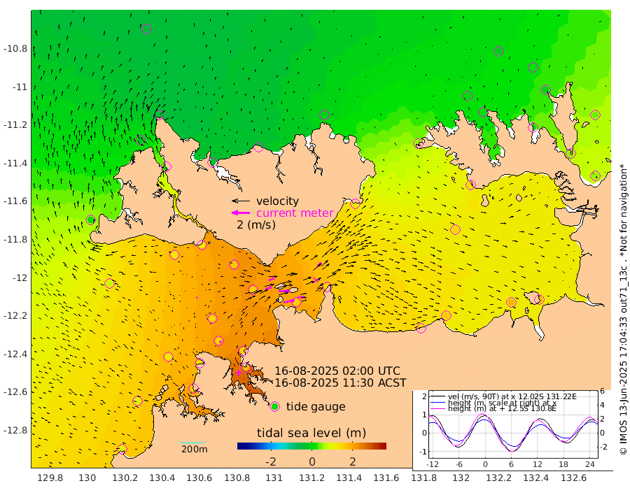 122cm/s 78T +4cm/s rms + 6cm/s 51T. Darwin_C1 52m 77cm/s 91T +4cm/s rms + 7cm/s -161T. Darwin_CW1 22m 72cm/s 72T +4cm/s rms + 8cm/s 61T. Darwin_CW2 34m 75cm/s 44T +3cm/s rms + 9cm/s 98T. Darwin_CW3 22m 121cm/s 90T +5cm/s rms + 7cm/s 88T. Darwin_C3 56m 64cm/s 65T +2cm/s rms + 9cm/s -126T. Darwin_CTbW 22m 13cm/s -58T +1cm/s rms + 1cm/s -47T. DARBGF 30m 23cm/s -37T +4cm/s rms + 3cm/s 80T. NRSDAR 19m -40cm Goodrich Bank 101cm Point Jenny 100cm Native Point 115cm Fish Reef 125cm Tapa Bay 14cm Point Fawcett (Offshore) 147cm Burge Point 114cm Munkunuwa 76cm Beagle A 158cm Parsons Bank 138cm Fenton Patches 156cm Hancox Shoal Area 153cm Nightcliff 174cm Darwin 137cm Charles Point Patches 152cm Glyde Point 153cm Chambers Bay 166cm Point Stuart 145cm Cape Hotham 139cm Christine Reef 181cm West Alligator Head 182cm East Field Island 135cm Two Hills Bay 123cm Camp Point 124cm Medina Inlet South 10cm South Barlow Point -21cm St. Asaph Bay -39cm Cape Van Dieman -27cm Snake Bay -32cm Cache Point -5cm Point Jahleel (Off) 53cm Cape Don 9cm Port Essington 9cm Smith Point - West 12cm NW Peacock Island -17cm North Of Jones Shoal -2cm Peacock Island 50cm Point David 18cm D'urville Point 54cm Copeland Island 42cm One Tree Point