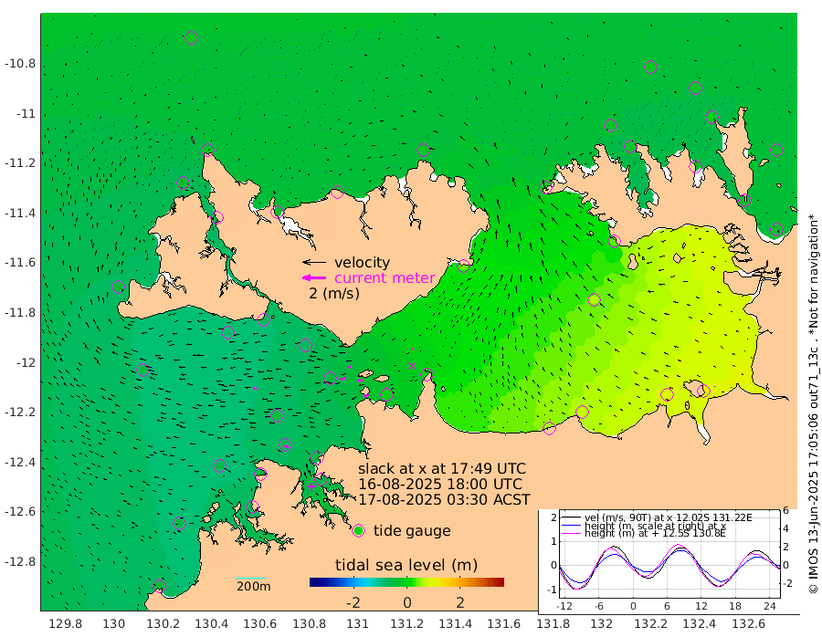 53cm/s -103T +4cm/s rms + 6cm/s 51T. Darwin_C1 52m 14cm/s -89T +4cm/s rms + 7cm/s -161T. Darwin_CW1 22m 53cm/s -109T +4cm/s rms + 8cm/s 61T. Darwin_CW2 34m 12cm/s -83T +3cm/s rms + 9cm/s 98T. Darwin_CW3 22m 54cm/s -94T +5cm/s rms + 7cm/s 88T. Darwin_C3 56m 31cm/s -118T +2cm/s rms + 9cm/s -126T. Darwin_CTbW 22m 38cm/s -89T +1cm/s rms + 1cm/s -47T. DARBGF 30m 36cm/s -63T +4cm/s rms + 3cm/s 80T. NRSDAR 19m -16cm Goodrich Bank -44cm Point Jenny -48cm Native Point -56cm Fish Reef -54cm Tapa Bay -39cm Point Fawcett (Offshore) -54cm Burge Point -81cm Munkunuwa -37cm Beagle A -71cm Parsons Bank -44cm Fenton Patches -46cm Hancox Shoal Area -45cm Nightcliff -63cm Darwin -58cm Charles Point Patches -1cm Glyde Point 65cm Chambers Bay 70cm Point Stuart 18cm Cape Hotham 67cm Christine Reef 83cm West Alligator Head 116cm East Field Island 37cm Two Hills Bay 43cm Camp Point -66cm Medina Inlet South -52cm South Barlow Point -32cm St. Asaph Bay -22cm Cape Van Dieman -31cm Snake Bay -11cm Cache Point -12cm Point Jahleel (Off) -9cm Cape Don -23cm Port Essington -22cm Smith Point - West -20cm NW Peacock Island -14cm North Of Jones Shoal -6cm Peacock Island -27cm Point David -26cm D'urville Point -24cm Copeland Island -23cm One Tree Point