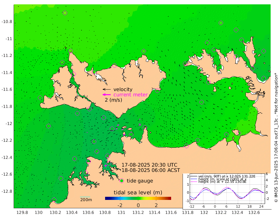 64cm/s -102T +4cm/s rms + 6cm/s 51T. Darwin_C1 52m 15cm/s -86T +4cm/s rms + 7cm/s -161T. Darwin_CW1 22m 35cm/s -108T +4cm/s rms + 8cm/s 61T. Darwin_CW2 34m 17cm/s -119T +3cm/s rms + 9cm/s 98T. Darwin_CW3 22m 41cm/s -93T +5cm/s rms + 7cm/s 88T. Darwin_C3 56m 42cm/s -116T +2cm/s rms + 9cm/s -126T. Darwin_CTbW 22m 12cm/s -91T +1cm/s rms + 1cm/s -47T. DARBGF 30m 12cm/s -77T +4cm/s rms + 3cm/s 80T. NRSDAR 19m 43cm Goodrich Bank -5cm Point Jenny -5cm Native Point -13cm Fish Reef -14cm Tapa Bay 20cm Point Fawcett (Offshore) -13cm Burge Point -30cm Munkunuwa 12cm Beagle A -37cm Parsons Bank -7cm Fenton Patches -25cm Hancox Shoal Area -17cm Nightcliff -26cm Darwin -8cm Charles Point Patches -9cm Glyde Point 6cm Chambers Bay -4cm Point Stuart -8cm Cape Hotham 10cm Christine Reef -5cm West Alligator Head 11cm East Field Island -5cm Two Hills Bay 14cm Camp Point -17cm Medina Inlet South 17cm South Barlow Point 33cm St. Asaph Bay 38cm Cape Van Dieman 33cm Snake Bay 40cm Cache Point 28cm Point Jahleel (Off) 8cm Cape Don 16cm Port Essington 14cm Smith Point - West 14cm NW Peacock Island 29cm North Of Jones Shoal 8cm Peacock Island -7cm Point David 8cm D'urville Point -10cm Copeland Island -1cm One Tree Point