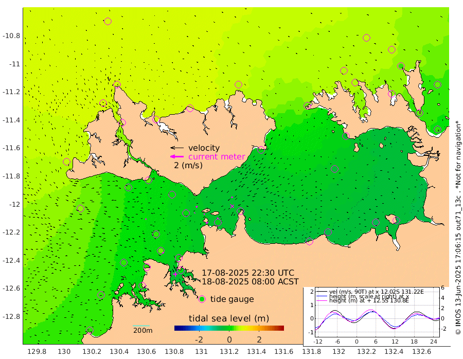 37cm/s -102T +4cm/s rms + 6cm/s 51T. Darwin_C1 52m 19cm/s -86T +4cm/s rms + 7cm/s -161T. Darwin_CW1 22m 8cm/s -120T +4cm/s rms + 8cm/s 61T. Darwin_CW2 34m 23cm/s -131T +3cm/s rms + 9cm/s 98T. Darwin_CW3 22m 12cm/s -90T +5cm/s rms + 7cm/s 88T. Darwin_C3 56m 23cm/s -115T +2cm/s rms + 9cm/s -126T. Darwin_CTbW 22m 18cm/s 94T +1cm/s rms + 1cm/s -47T. DARBGF 30m 19cm/s 131T +4cm/s rms + 3cm/s 80T. NRSDAR 19m 85cm Goodrich Bank 31cm Point Jenny 33cm Native Point 31cm Fish Reef 27cm Tapa Bay 69cm Point Fawcett (Offshore) 24cm Burge Point 23cm Munkunuwa 48cm Beagle A 13cm Parsons Bank 25cm Fenton Patches 9cm Hancox Shoal Area 13cm Nightcliff 21cm Darwin 42cm Charles Point Patches -5cm Glyde Point -38cm Chambers Bay -54cm Point Stuart -17cm Cape Hotham -35cm Christine Reef -66cm West Alligator Head -73cm East Field Island -25cm Two Hills Bay -10cm Camp Point 34cm Medina Inlet South 76cm South Barlow Point 81cm St. Asaph Bay 84cm Cape Van Dieman 86cm Snake Bay 80cm Cache Point 64cm Point Jahleel (Off) 34cm Cape Don 61cm Port Essington 58cm Smith Point - West 57cm NW Peacock Island 71cm North Of Jones Shoal 23cm Peacock Island 35cm Point David 55cm D'urville Point 30cm Copeland Island 42cm One Tree Point