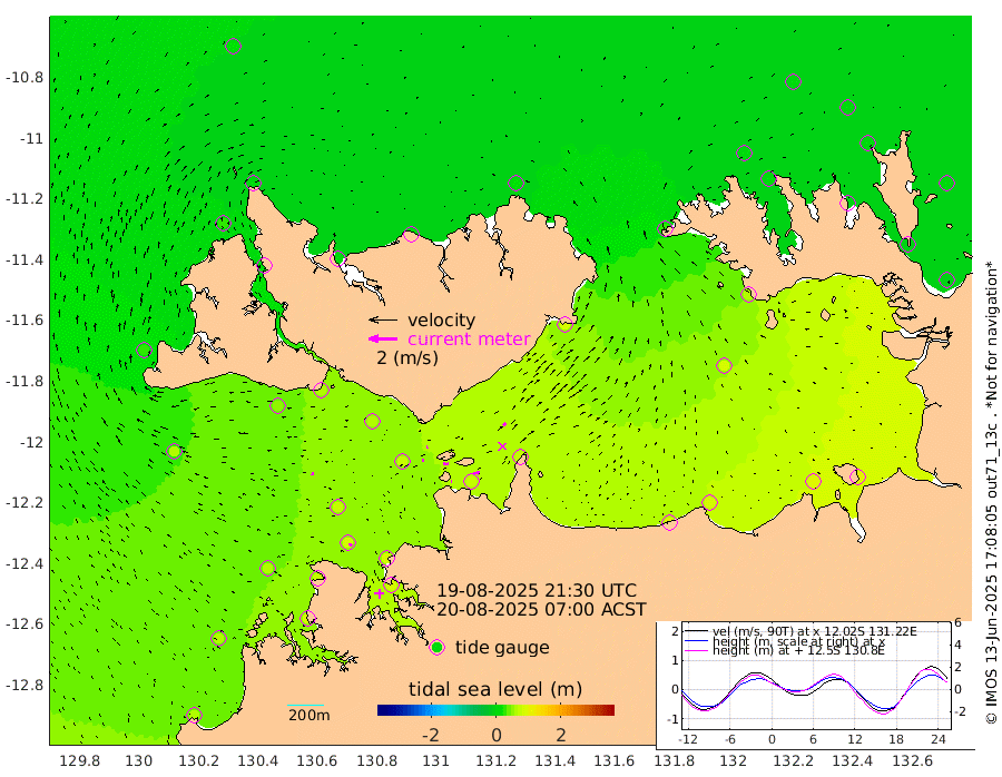 3cm/s 82T +4cm/s rms + 6cm/s 51T. Darwin_C1 52m 47cm/s 89T +4cm/s rms + 7cm/s -161T. Darwin_CW1 22m 13cm/s 75T +4cm/s rms + 8cm/s 61T. Darwin_CW2 34m 25cm/s 34T +3cm/s rms + 9cm/s 98T. Darwin_CW3 22m 41cm/s 92T +5cm/s rms + 7cm/s 88T. Darwin_C3 56m 7cm/s -125T +2cm/s rms + 9cm/s -126T. Darwin_CTbW 22m 17cm/s -75T +1cm/s rms + 1cm/s -47T. DARBGF 30m 23cm/s -53T +4cm/s rms + 3cm/s 80T. NRSDAR 19m 14cm Goodrich Bank 62cm Point Jenny 61cm Native Point 58cm Fish Reef 69cm Tapa Bay 32cm Point Fawcett (Offshore) 83cm Burge Point 50cm Munkunuwa 58cm Beagle A 59cm Parsons Bank 78cm Fenton Patches 71cm Hancox Shoal Area 80cm Nightcliff 83cm Darwin 79cm Charles Point Patches 78cm Glyde Point 94cm Chambers Bay 86cm Point Stuart 72cm Cape Hotham 90cm Christine Reef 95cm West Alligator Head 111cm East Field Island 65cm Two Hills Bay 84cm Camp Point 64cm Medina Inlet South 22cm South Barlow Point 23cm St. Asaph Bay 10cm Cape Van Dieman 9cm Snake Bay 14cm Cache Point 17cm Point Jahleel (Off) 29cm Cape Don 8cm Port Essington 3cm Smith Point - West 2cm NW Peacock Island 8cm North Of Jones Shoal 1cm Peacock Island -3cm Point David -2cm D'urville Point -4cm Copeland Island 2cm One Tree Point