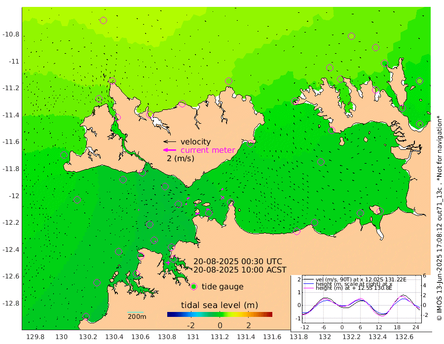 71cm/s -102T +4cm/s rms + 6cm/s 51T. Darwin_C1 52m 51cm/s -88T +4cm/s rms + 7cm/s -161T. Darwin_CW1 22m 25cm/s -111T +4cm/s rms + 8cm/s 61T. Darwin_CW2 34m 31cm/s -133T +3cm/s rms + 9cm/s 98T. Darwin_CW3 22m 21cm/s -91T +5cm/s rms + 7cm/s 88T. Darwin_C3 56m 43cm/s -115T +2cm/s rms + 9cm/s -126T. Darwin_CTbW 22m 13cm/s -87T +1cm/s rms + 1cm/s -47T. DARBGF 30m 15cm/s -64T +4cm/s rms + 3cm/s 80T. NRSDAR 19m 57cm Goodrich Bank -25cm Point Jenny -24cm Native Point -30cm Fish Reef -29cm Tapa Bay 19cm Point Fawcett (Offshore) -34cm Burge Point -35cm Munkunuwa -16cm Beagle A -34cm Parsons Bank -37cm Fenton Patches -31cm Hancox Shoal Area -37cm Nightcliff -27cm Darwin -12cm Charles Point Patches -21cm Glyde Point -15cm Chambers Bay -22cm Point Stuart -18cm Cape Hotham -13cm Christine Reef -27cm West Alligator Head -22cm East Field Island -9cm Two Hills Bay -1cm Camp Point -21cm Medina Inlet South 29cm South Barlow Point 37cm St. Asaph Bay 53cm Cape Van Dieman 57cm Snake Bay 52cm Cache Point 42cm Point Jahleel (Off) 22cm Cape Don 42cm Port Essington 38cm Smith Point - West 41cm NW Peacock Island 54cm North Of Jones Shoal 17cm Peacock Island 30cm Point David 37cm D'urville Point 26cm Copeland Island 36cm One Tree Point