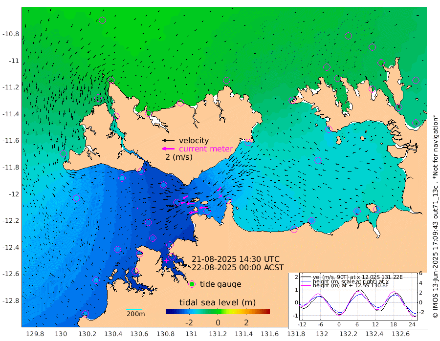 147cm/s -101T +4cm/s rms + 6cm/s 51T. Darwin_C1 52m 131cm/s -92T +4cm/s rms + 7cm/s -161T. Darwin_CW1 22m 74cm/s -106T +4cm/s rms + 8cm/s 61T. Darwin_CW2 34m 88cm/s -137T +3cm/s rms + 9cm/s 98T. Darwin_CW3 22m 123cm/s -90T +5cm/s rms + 7cm/s 88T. Darwin_C3 56m 78cm/s -116T +2cm/s rms + 9cm/s -126T. Darwin_CTbW 22m 14cm/s -120T +1cm/s rms + 1cm/s -47T. DARBGF 30m 7cm/s -119T +4cm/s rms + 3cm/s 80T. NRSDAR 19m -8cm Goodrich Bank -192cm Point Jenny -189cm Native Point -205cm Fish Reef -216cm Tapa Bay -99cm Point Fawcett (Offshore) -241cm Burge Point -190cm Munkunuwa -166cm Beagle A -225cm Parsons Bank -225cm Fenton Patches -225cm Hancox Shoal Area -233cm Nightcliff -256cm Darwin -234cm Charles Point Patches -204cm Glyde Point -182cm Chambers Bay -180cm Point Stuart -183cm Cape Hotham -165cm Christine Reef -190cm West Alligator Head -187cm East Field Island -156cm Two Hills Bay -163cm Camp Point -209cm Medina Inlet South -75cm South Barlow Point -48cm St. Asaph Bay -12cm Cape Van Dieman -17cm Snake Bay -21cm Cache Point -37cm Point Jahleel (Off) -93cm Cape Don -49cm Port Essington -42cm Smith Point - West -42cm NW Peacock Island -26cm North Of Jones Shoal -11cm Peacock Island -70cm Point David -47cm D'urville Point -72cm Copeland Island -68cm One Tree Point