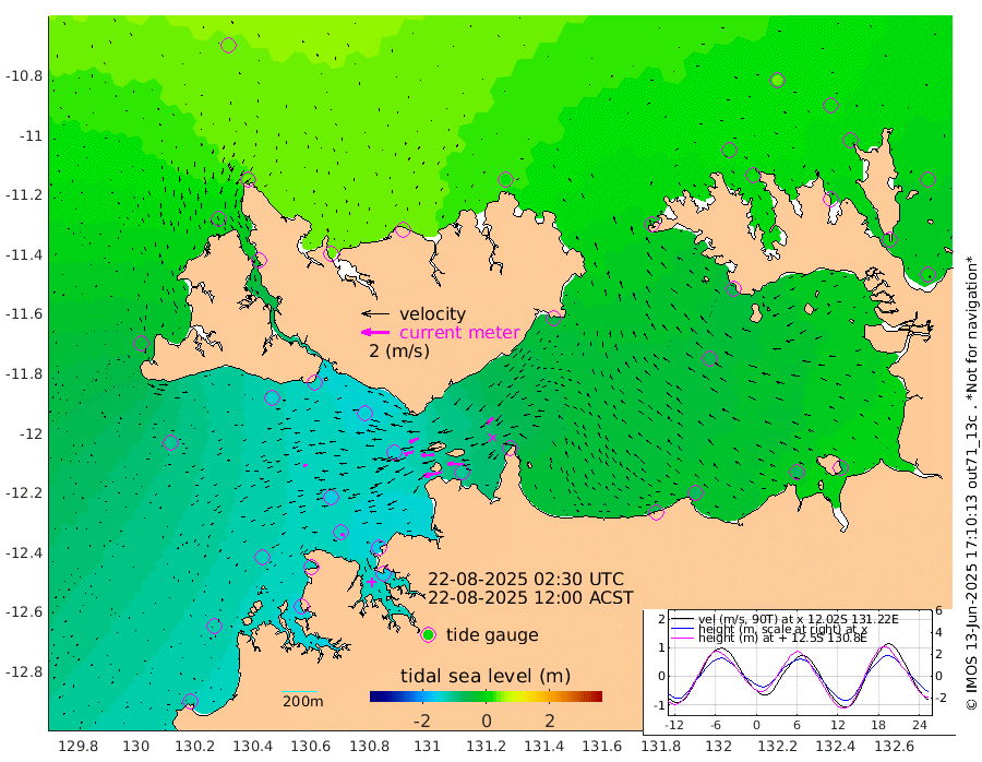 135cm/s -101T +4cm/s rms + 6cm/s 51T. Darwin_C1 52m 108cm/s -90T +4cm/s rms + 7cm/s -161T. Darwin_CW1 22m 66cm/s -107T +4cm/s rms + 8cm/s 61T. Darwin_CW2 34m 64cm/s -135T +3cm/s rms + 9cm/s 98T. Darwin_CW3 22m 86cm/s -91T +5cm/s rms + 7cm/s 88T. Darwin_C3 56m 74cm/s -116T +2cm/s rms + 9cm/s -126T. Darwin_CTbW 22m 28cm/s -95T +1cm/s rms + 1cm/s -47T. DARBGF 30m 27cm/s -68T +4cm/s rms + 3cm/s 80T. NRSDAR 19m 41cm Goodrich Bank -117cm Point Jenny -116cm Native Point -133cm Fish Reef -134cm Tapa Bay -36cm Point Fawcett (Offshore) -151cm Burge Point -137cm Munkunuwa -103cm Beagle A -145cm Parsons Bank -150cm Fenton Patches -139cm Hancox Shoal Area -149cm Nightcliff -154cm Darwin -131cm Charles Point Patches -105cm Glyde Point -69cm Chambers Bay -68cm Point Stuart -85cm Cape Hotham -61cm Christine Reef -74cm West Alligator Head -60cm East Field Island -57cm Two Hills Bay -54cm Camp Point -129cm Medina Inlet South -24cm South Barlow Point 0cm St. Asaph Bay 36cm Cape Van Dieman 37cm Snake Bay 35cm Cache Point 18cm Point Jahleel (Off) -16cm Cape Don 15cm Port Essington 12cm Smith Point - West 18cm NW Peacock Island 36cm North Of Jones Shoal 11cm Peacock Island 5cm Point David 11cm D'urville Point 1cm Copeland Island 10cm One Tree Point