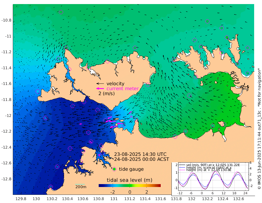 213cm/s -102T +4cm/s rms + 6cm/s 51T. Darwin_C1 52m 164cm/s -89T +4cm/s rms + 7cm/s -161T. Darwin_CW1 22m 124cm/s -107T +4cm/s rms + 8cm/s 61T. Darwin_CW2 34m 93cm/s -132T +3cm/s rms + 9cm/s 98T. Darwin_CW3 22m 174cm/s -91T +5cm/s rms + 7cm/s 88T. Darwin_C3 56m 120cm/s -115T +2cm/s rms + 9cm/s -126T. Darwin_CTbW 22m 70cm/s -93T +1cm/s rms + 1cm/s -47T. DARBGF 30m 60cm/s -65T +4cm/s rms + 3cm/s 80T. NRSDAR 19m -56cm Goodrich Bank -255cm Point Jenny -255cm Native Point -271cm Fish Reef -280cm Tapa Bay -177cm Point Fawcett (Offshore) -290cm Burge Point -271cm Munkunuwa -228cm Beagle A -278cm Parsons Bank -274cm Fenton Patches -263cm Hancox Shoal Area -282cm Nightcliff -303cm Darwin -291cm Charles Point Patches -195cm Glyde Point -109cm Chambers Bay -92cm Point Stuart -152cm Cape Hotham -94cm Christine Reef -89cm West Alligator Head -52cm East Field Island -109cm Two Hills Bay -112cm Camp Point -279cm Medina Inlet South -151cm South Barlow Point -118cm St. Asaph Bay -65cm Cape Van Dieman -74cm Snake Bay -65cm Cache Point -73cm Point Jahleel (Off) -108cm Cape Don -81cm Port Essington -78cm Smith Point - West -70cm NW Peacock Island -62cm North Of Jones Shoal -23cm Peacock Island -82cm Point David -78cm D'urville Point -79cm Copeland Island -82cm One Tree Point